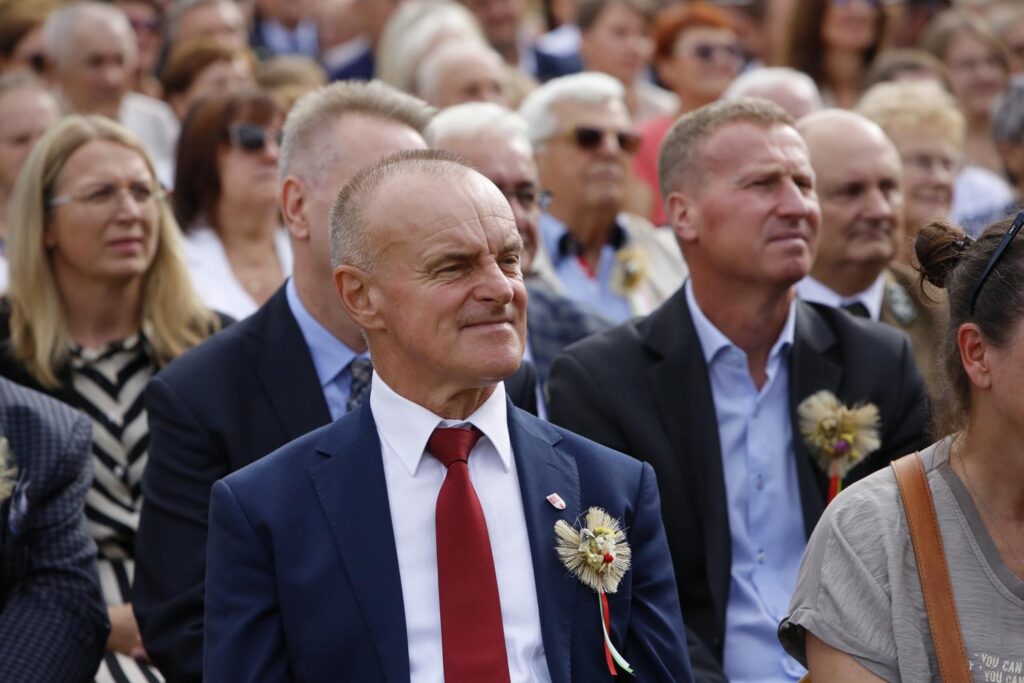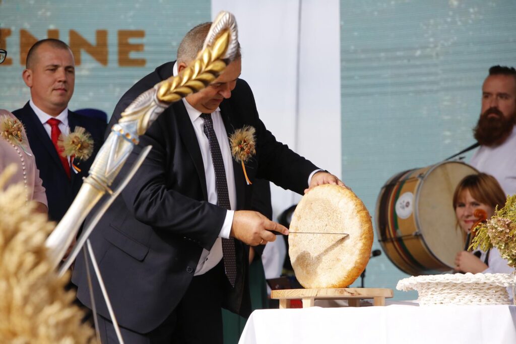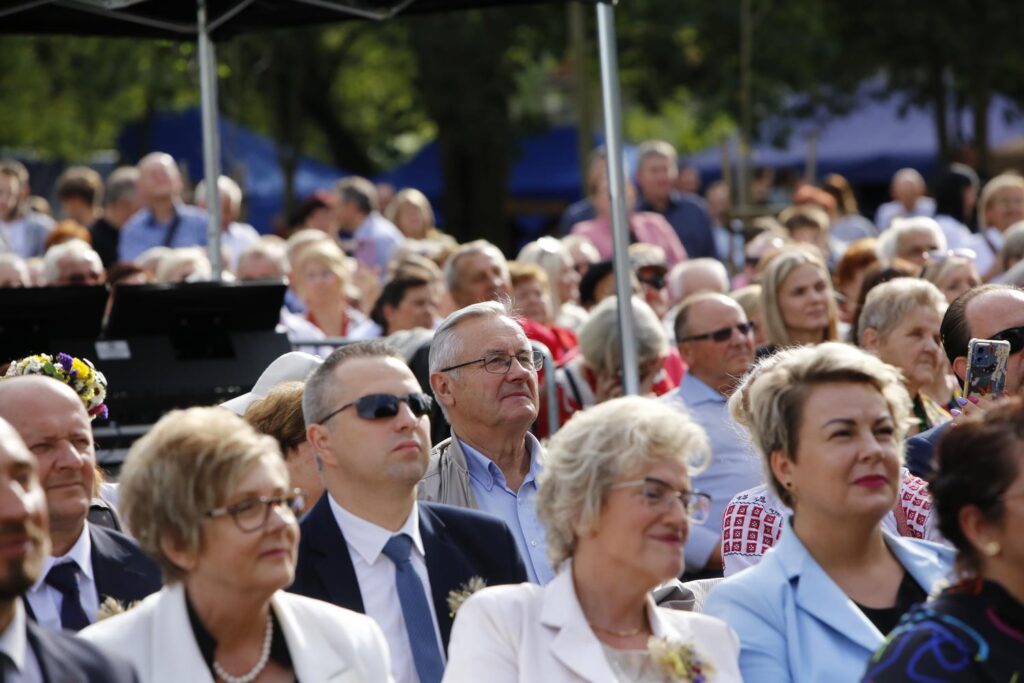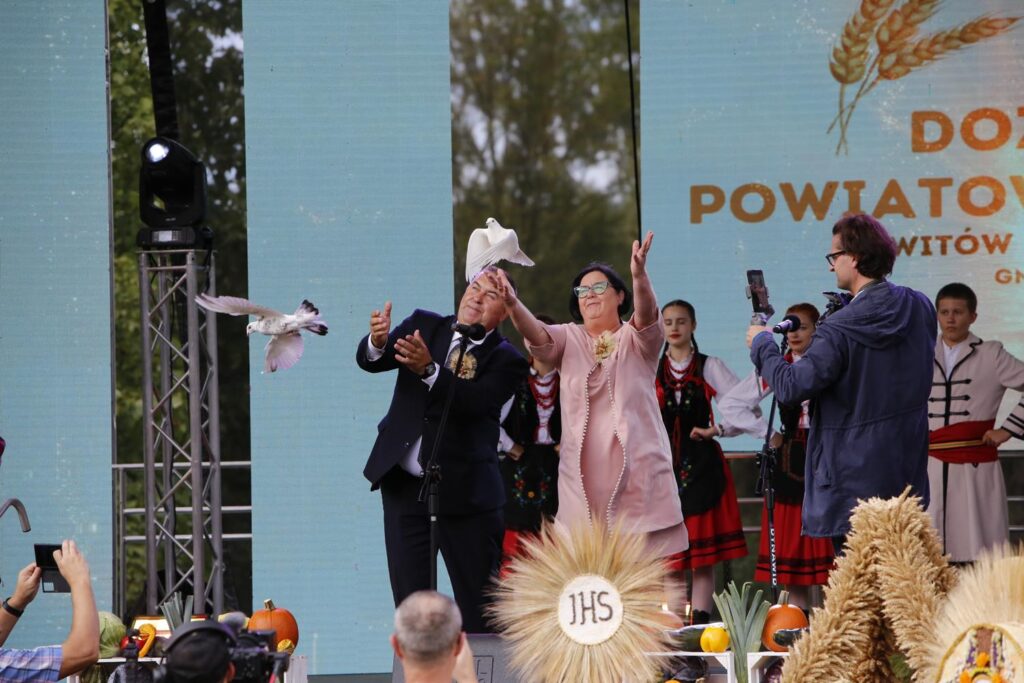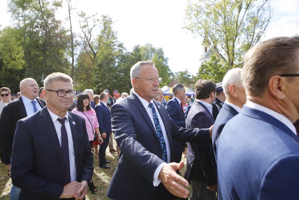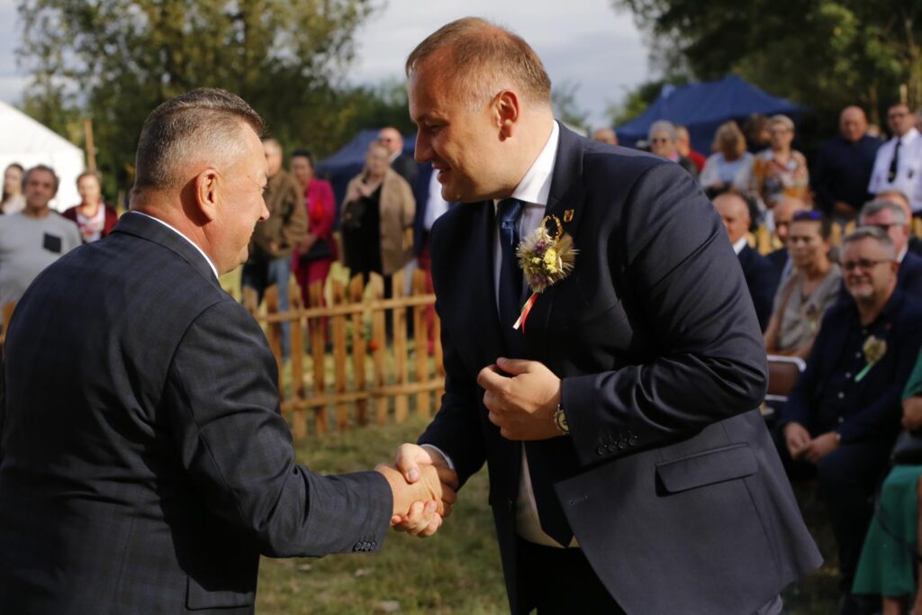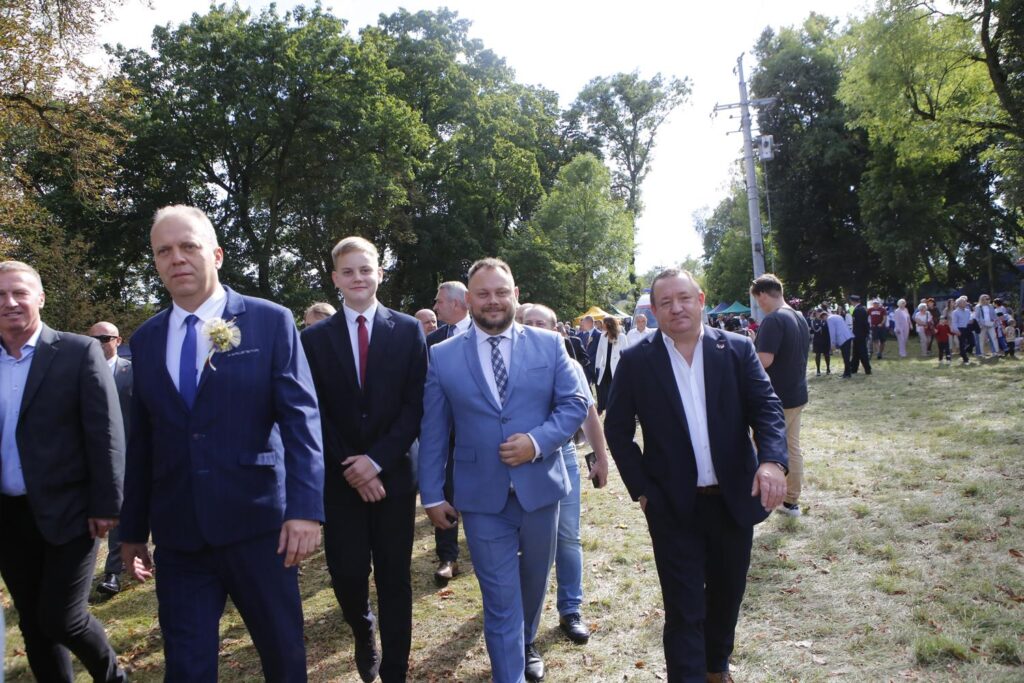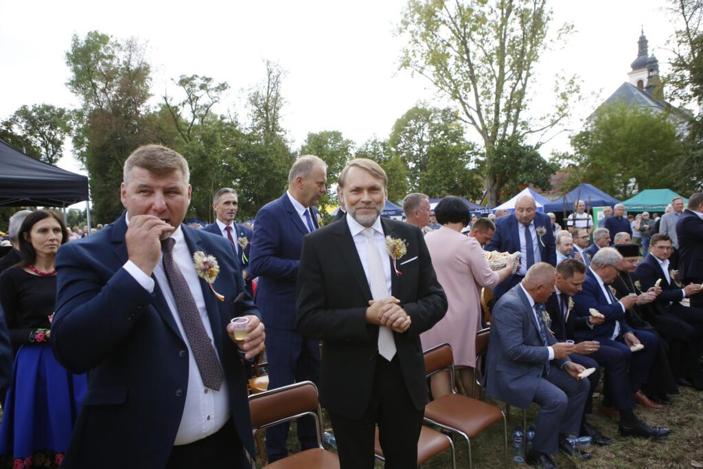 – Dziękuję między innymi wszystkim kołom gospodyń, które tak się napracowały, dlatego nie wyobrażałem sobie, żeby te Dożynki się nie odbyły, a były rekomendacje, żeby je odwołać. Powiedziałem panu wojewodzie, że jeśli będzie nam zagrażała powódź, to podejmiemy taką decyzję nawet w ostatniej chwili, żeby nikomu się nic nie stało, ale jak państwo widzą, nikomu się nic nie stanie, bo dzisiaj możemy przy promieniach słonecznych państwu dziękować. Szanowni państwo, jako starosta piotrkowski chciałbym łączyć, ale nie w złości i gniewie, tylko w miłości i chlebie, mieszkańców ziemi piotrkowskiej – powiedział Piotr Łączny.