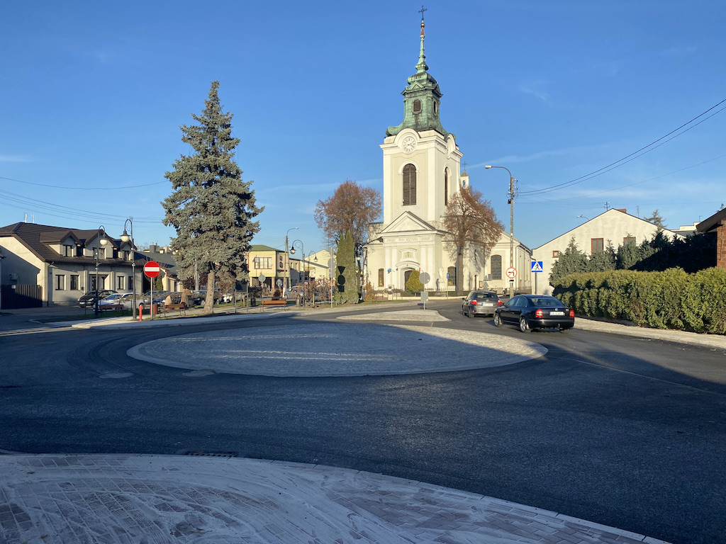 Dwa nowe ronda na głównej ulicy Modrzewskiego w Wolborzu są już przejezdne. Ruch odbywa się teraz płynnie, a same ronda doskonale wpisały się w krajobraz miasta.