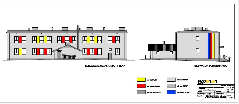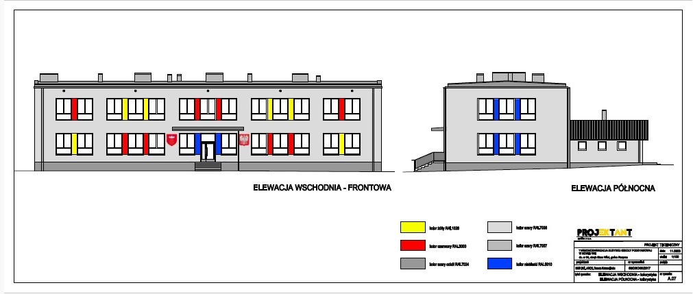 • powiększenie otworów okiennych w elewacji przy głównym wejściu prowadzącym do budynku szkoły