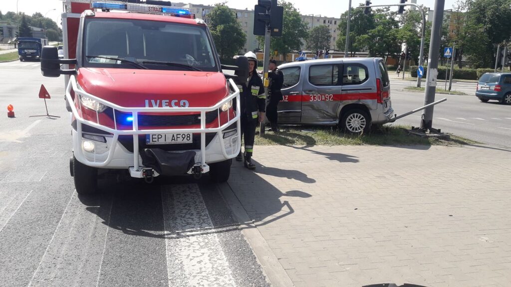Samochód operacyjny PSP, zderzył się z osobówką. Do wypadku doszło na skrzyżowaniu Piłsudskiego i Armii Krajowej w Piotrkowie.Strażacy jechali do wypadku na autostradzie A1. W momencie kraksy, pojazd strażacki miał włączone sygnały świetlne i dźwiękowe.