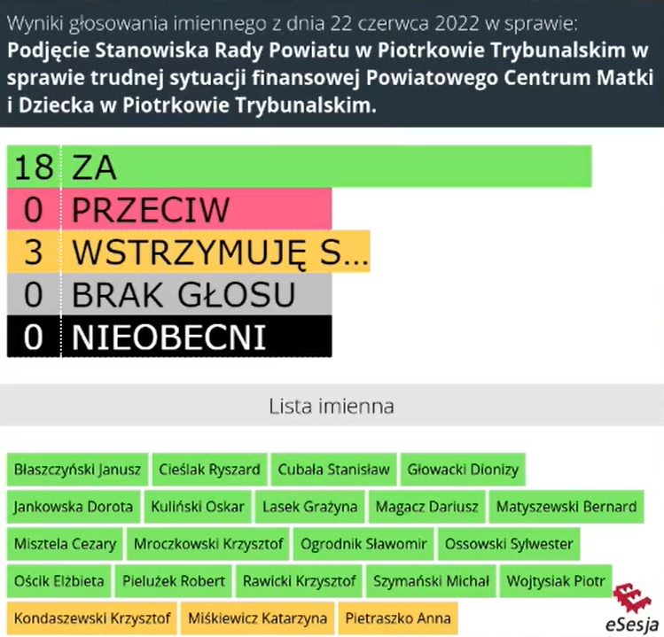 Brak stanowczych i szybkich działań, o które występujemy, wiązać się może z koniecznością podjęcia decyzji przez samorząd Powiatu Piotrkowskiego o zaprzestaniu działalności Powiatowego Centrum Matki i Dziecka w Piotrkowie. Stanowisko było procedowane podczas środowej sesji absolutoryjnej. Ku zdziwieniu niektórych obserwatorów obrad, 3 radnych wstrzymało się od poparcia stanowiska.