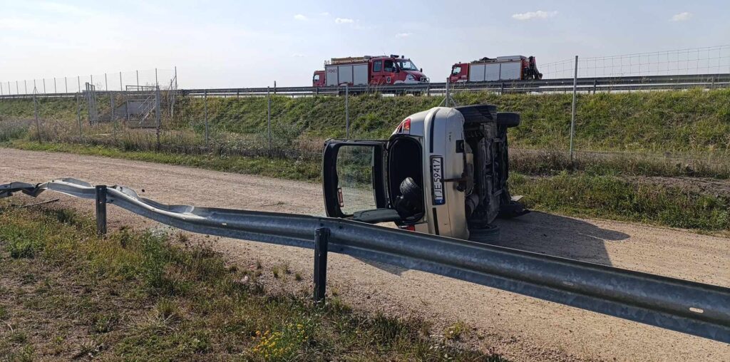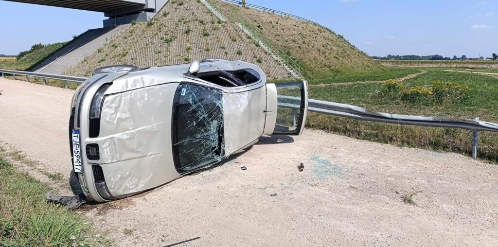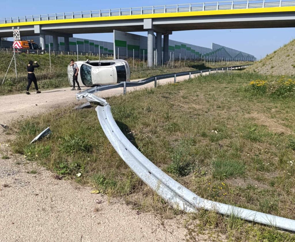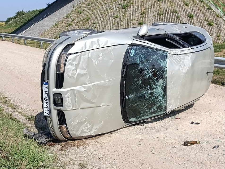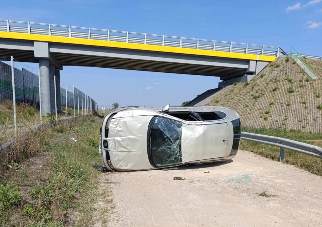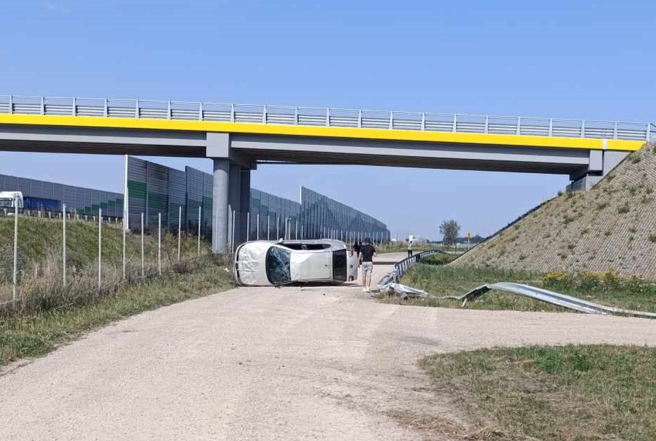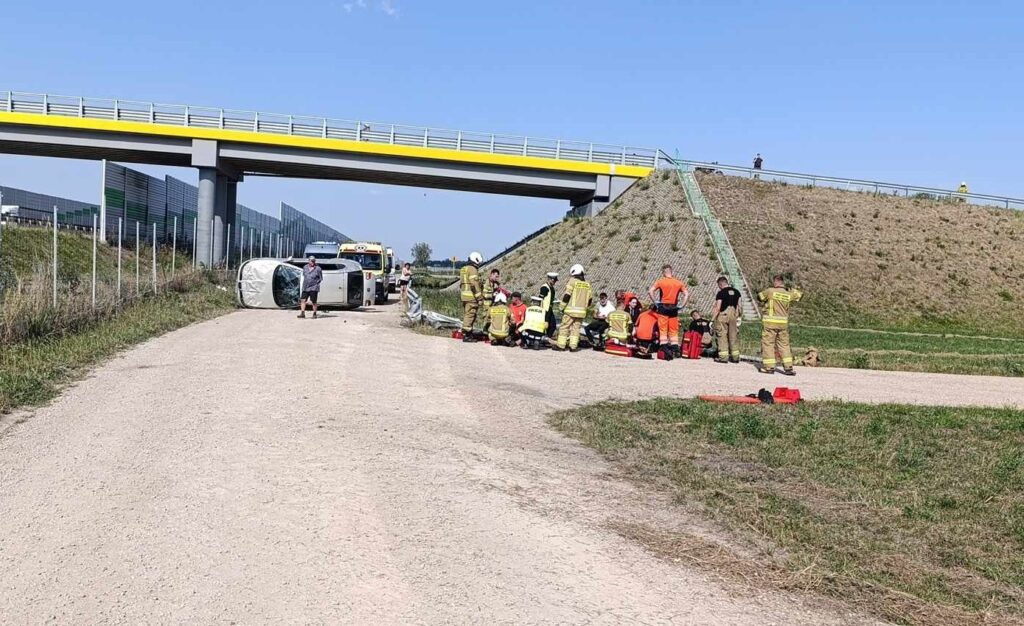 Do wypadku doszło około godziny 14:00. Nieoficjalnie wiadomo, że w wyniku nadmiernej prędkości, kierujący seatem, na zakręcie stracił panowanie nad pojazdem, uderzył w bariery energochłonne, czym doprowadził do wywrotki pojazdu. Pierwszej pomocy poszkodowanym udzielili pracownicy służby drogowej, którzy pomogli wyjść mężczyźnie z przewróconego samochodu. W międzyczasie na miejsce dotarli strażacy, załoga pogotowia ratunkowego oraz śmigłowiec LPR. Kierujący oraz trzech pasażerów osobówki trafiło do szpitala na badania.
