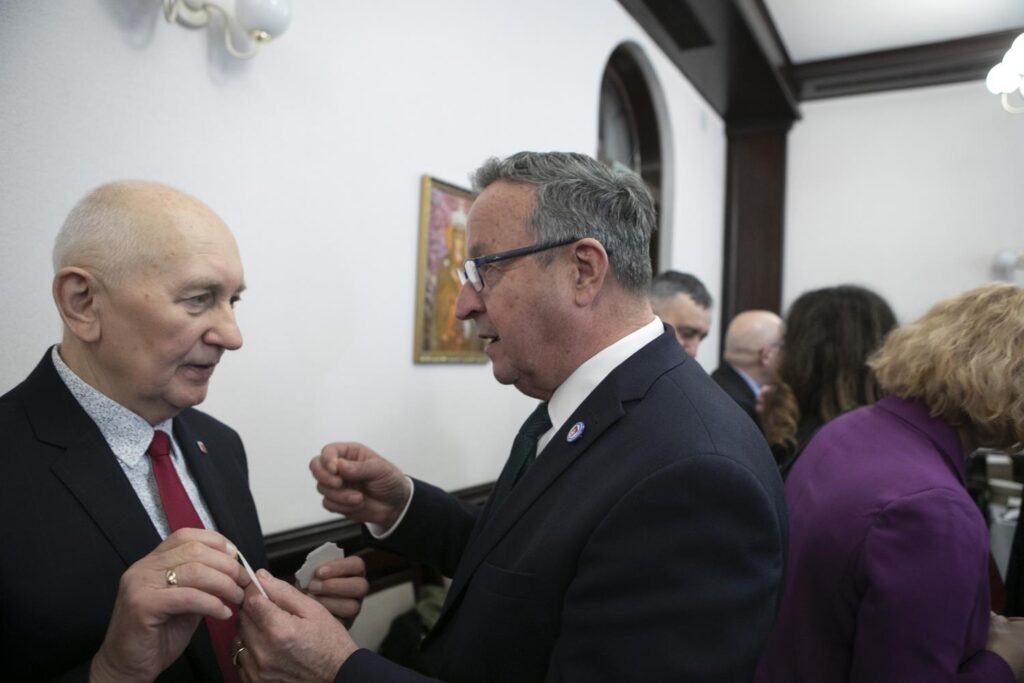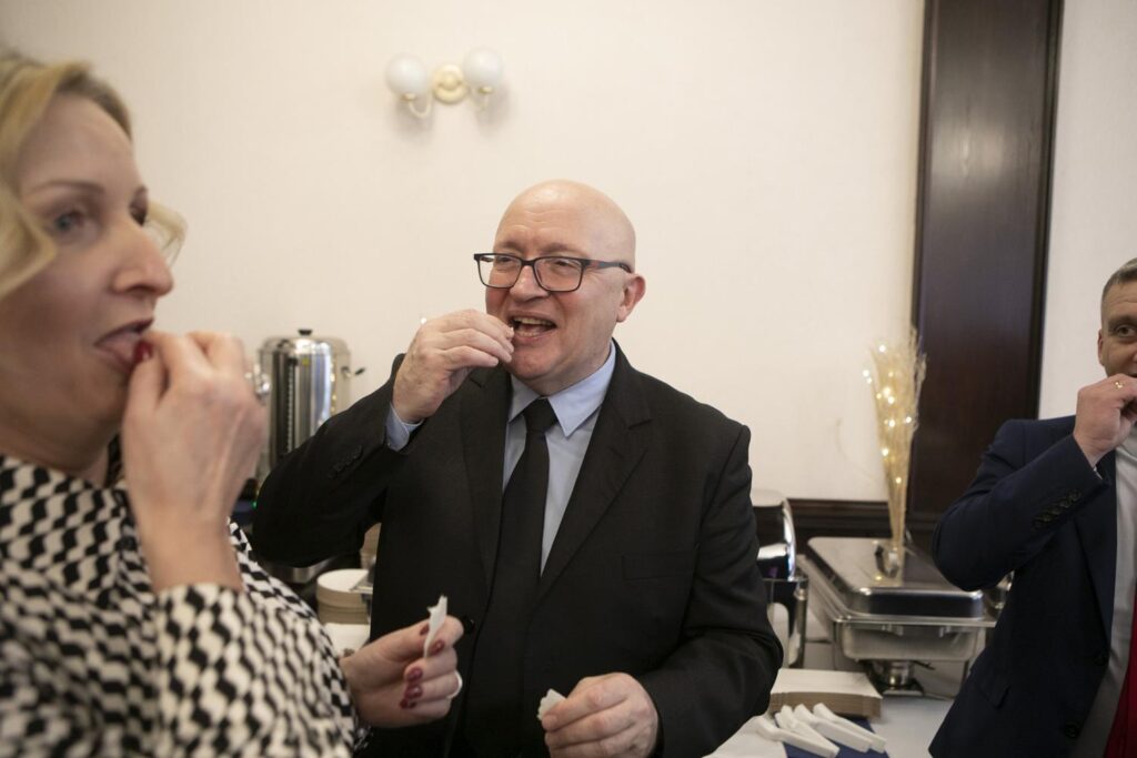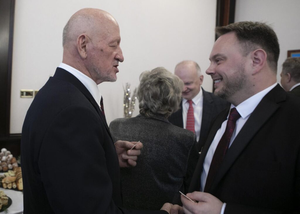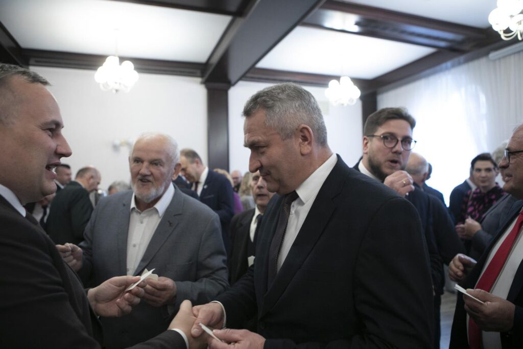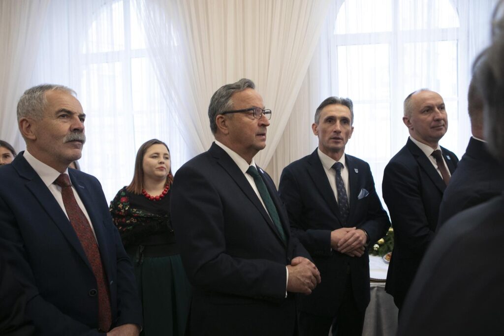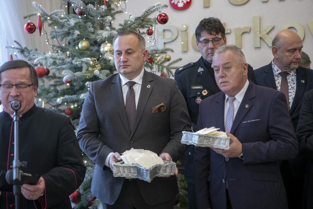 Spotkanie opłatkowe samorządowców ziemi piotrkowskiej (ale nie tylko) odbyło się w środę w starostwie. Na zaproszenia starosty Piotra Wojtysiaka i Przewodniczącego Rady Powiatu Bernarda Matyszewskiego, odpowiedzieli radni powiatowi i miejscy, burmistrzowie i wójtowie gmin powiatu piotrkowskiego oraz niektórzy samorządowcy z radomszczańskiego i łódzkiego-wschodniego, kombatanci, seniorzy, przedstawiciele służb mundurowych a także innych instytucje współpracujących z powiatem piotrkowskim. W spotkaniu brali udział przedstawiciele duchowieństwa oraz lokalnego biznesu. W tym dniu także harcerze przekazali także Betlejemskie Światełko Pokoju. Spotkanie opłatkowe swój początek miało na jarmarku świątecznym przy Powiatowym Centrum Przesiadkowym. Wyjątkowości wydarzeniu dodało wspólne kolędowanie razem z Zespołem Pieśni i Tańca „Gorzkowice”. Choinkę rozświetliły przedszkolaki w asyście starosty.