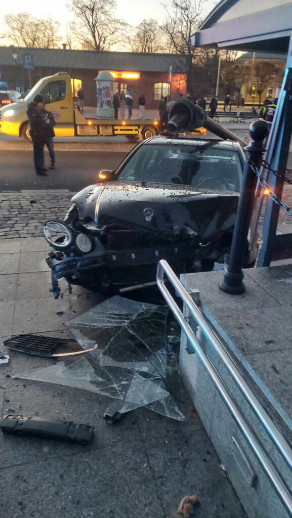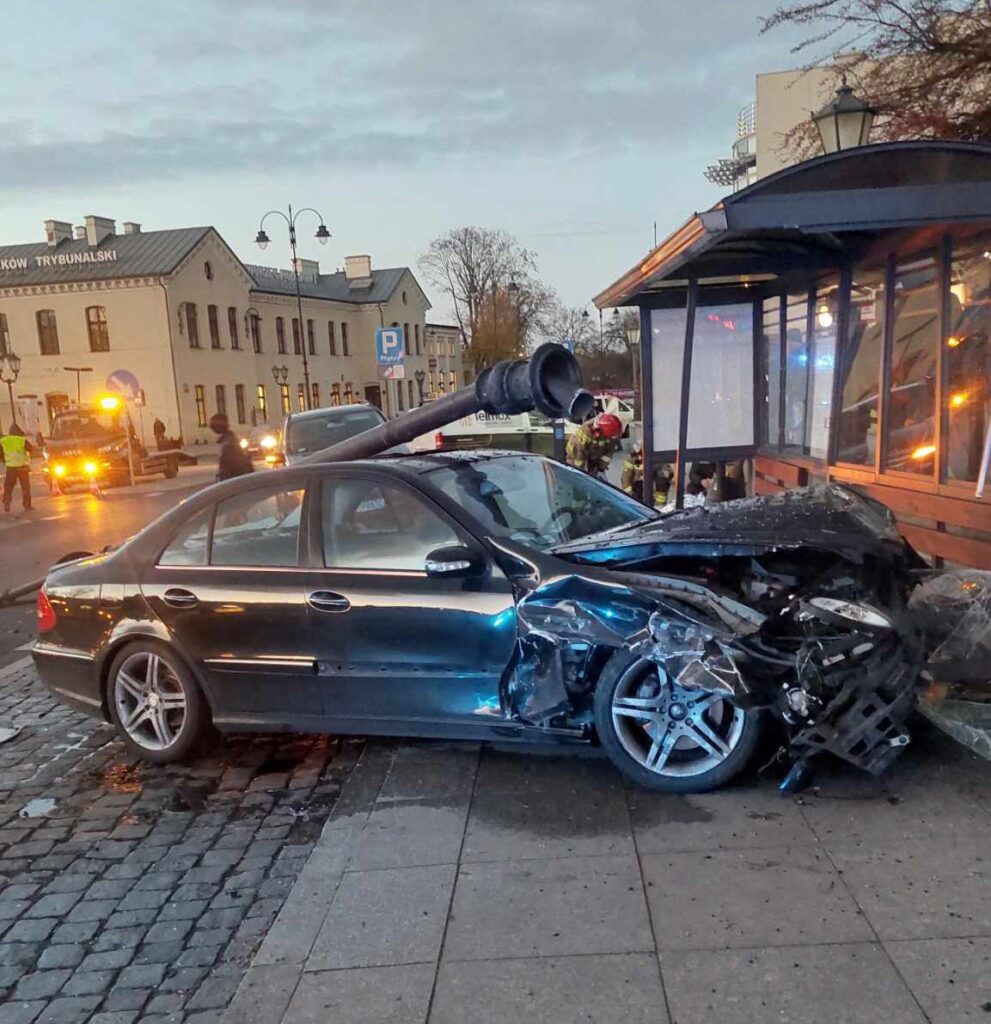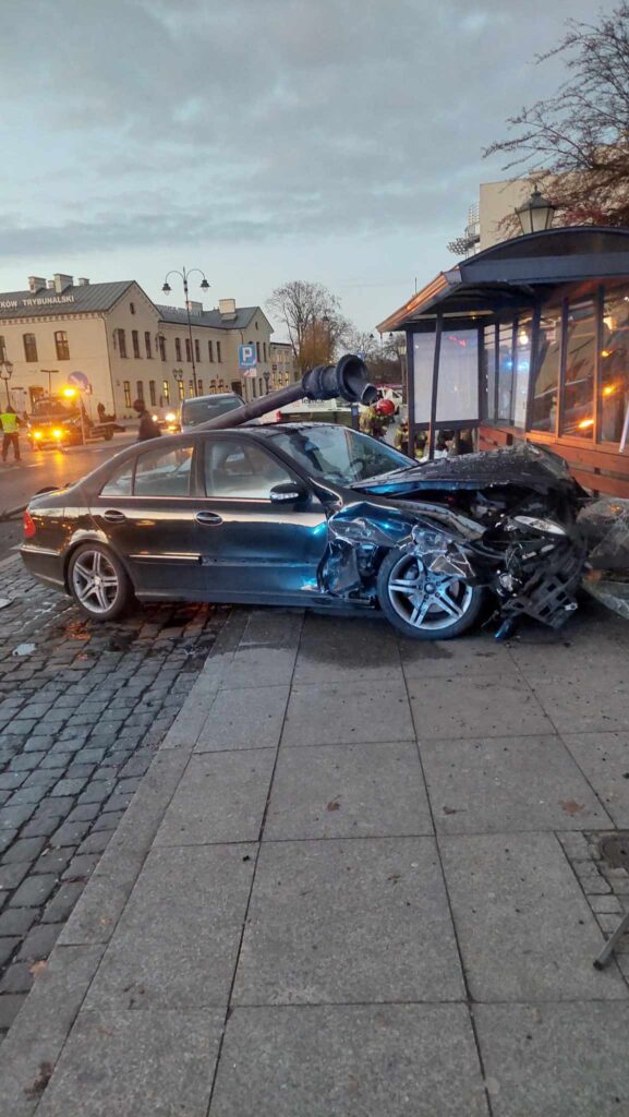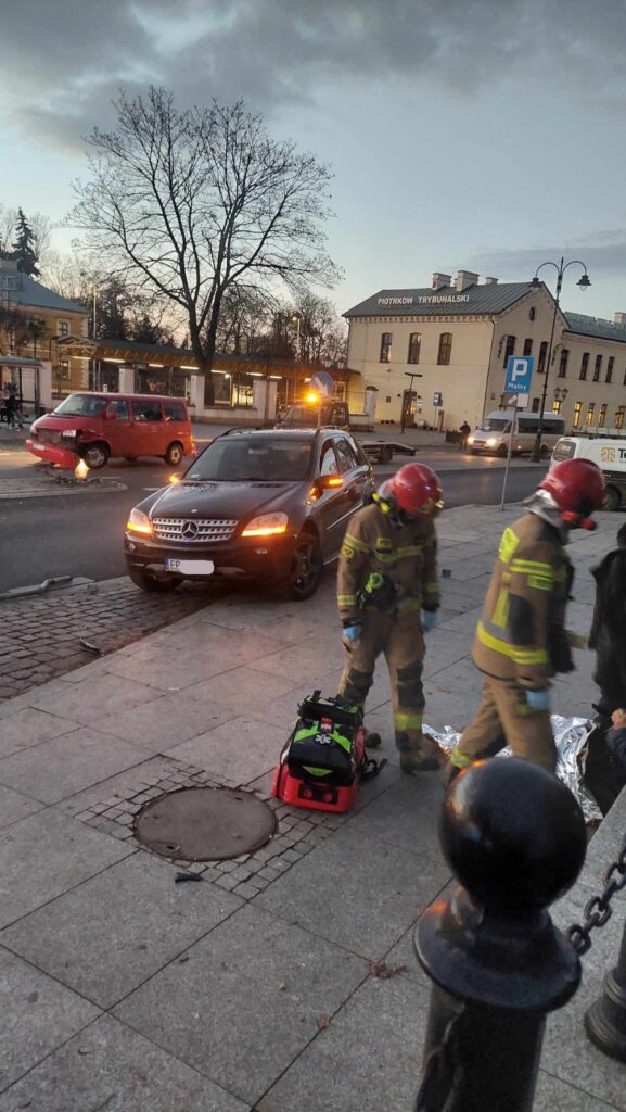 Do wypadku doszło w czwartek (21.11) na ulicy POW w Piotrkowie. W zatłoczony zazwyczaj w godzinach szczytu przystanek MZK, uderzył Mercedes. Pojazd ściął wcześniej latarnię uliczną. – Ze wstępnych informacji od policjantów będących na miejscu wynika, że kierujący Volkswagen T4 jadąc od strony ulicy Wojska Polskiego w kierunku Słowackiego, podczas nieprawidłowo wykonywanego manewru zawracania, doprowadził do zderzenia z Mercedesem. W wyniku uderzenia, osobowy Mercedes wjechał w latarnię, a następnie w przystanek autobusowy. Na szczęście była to jedynie bardzo groźnie wyglądająca kolizja. Nikt nie odniósł obrażeń w wyniku tego zdarzenia. Ratownicy udzielili jedynie pomocy kobiecie, która była świadkiem tego zdarzenia – relacjonuje asp. szt. Izabela Gajewska z KMP w Piotrkowie.