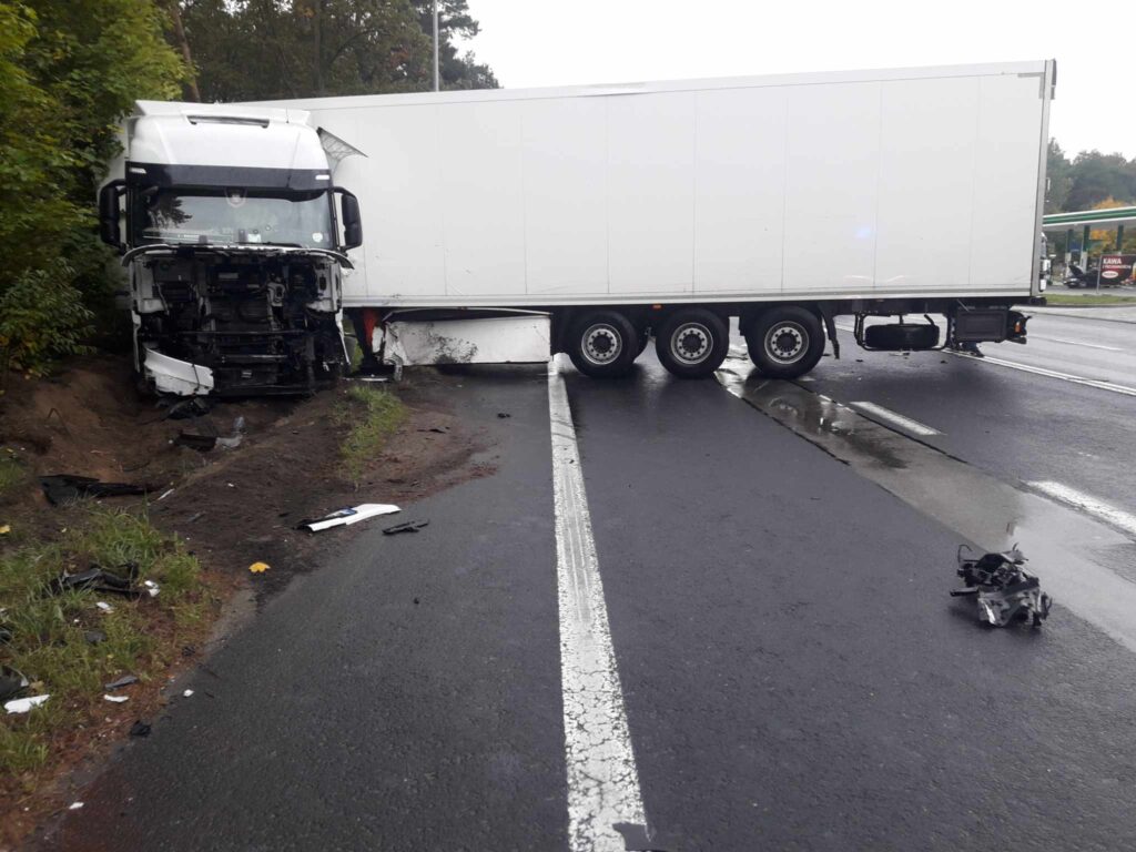 Zgłoszenie z Centrum Powiadamiania Ratunkowego piotrkowscy strażacy otrzymali o 10:38. Z naszych informacji wynikało, że kierujący samochodem ciężarowym jechał od strony trasy S8. – Ze wstępnych ustaleń wynika, że kierujący zestawem pojazdów, jadąc drogą krajową nr 74, z nieustalonych przyczyn, zjechał na przeciwległy pas ruchu. Doprowadził do zderzenia z osobowym Saabem, za kierownicą którego siedziała 28-letnia kobieta. Ciężarówka jeszcze uderzyła w Toyotę typu bus – mówił w niedzielę mł. asp. Mateusz Piliński z Komendy Wojewódzkiej Policji w Łodzi.