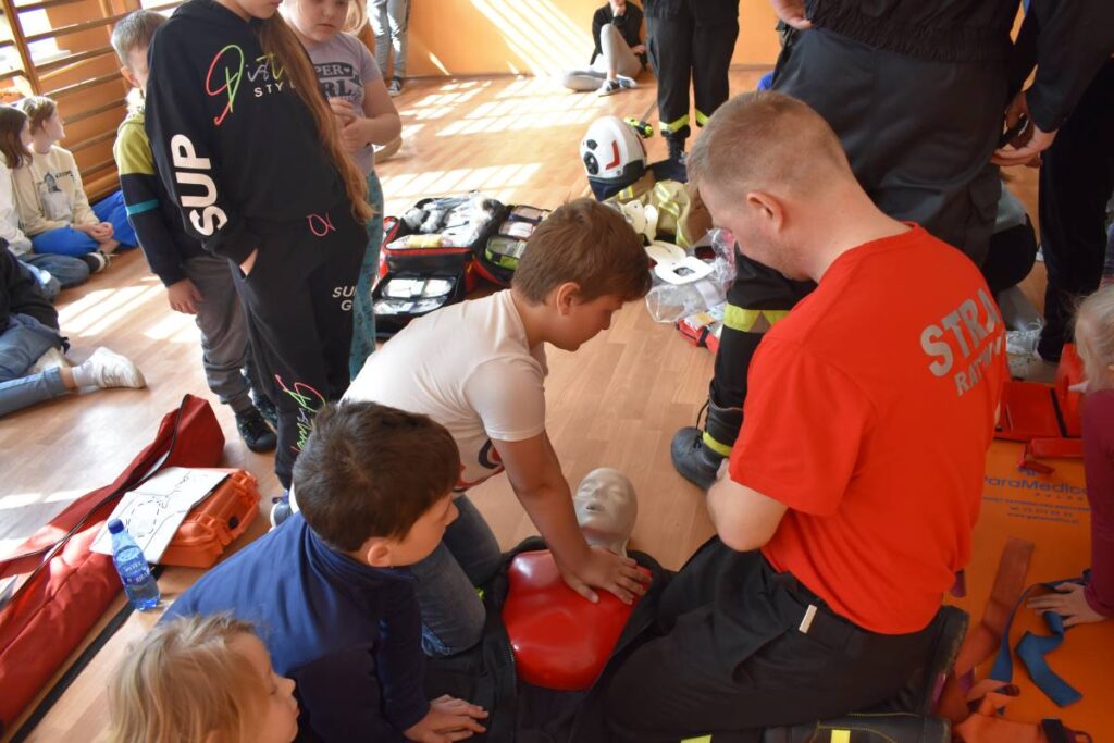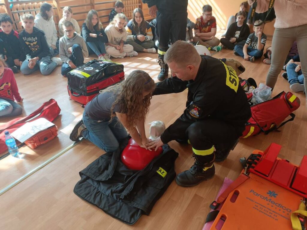Młodzież ze szkoły w Krzemieniewicach przeszli szkolenie z udzielania pierwszej pomocy. Młodzież obejrzała także wóz strażacki. Na koniec druhowie zafundowali uczniom kąpiel w pianie strażackiej.