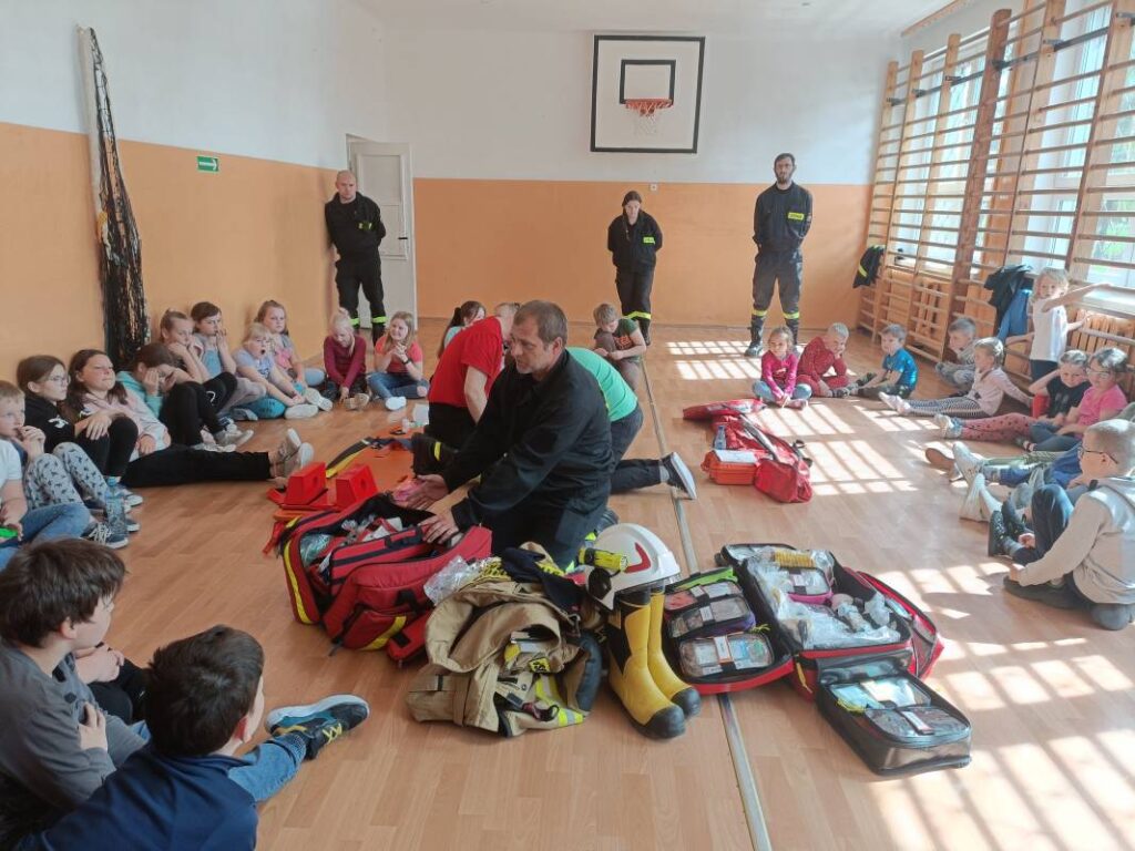 Szkołę Podstawową w Krzemieniewicach odwiedzili niecodzienni goście – strażacy z Ochotniczej Straży Pożarnej w Krzemieniewicach: Zbigniew Włodarczyk, Tomasz Orziński, Jakub Ciesielski, Mirosław Figa oraz Patrycja Figa. W spotkaniu uczestniczył również wójt gminy Gorzkowice Alojzy Włodarczyk.