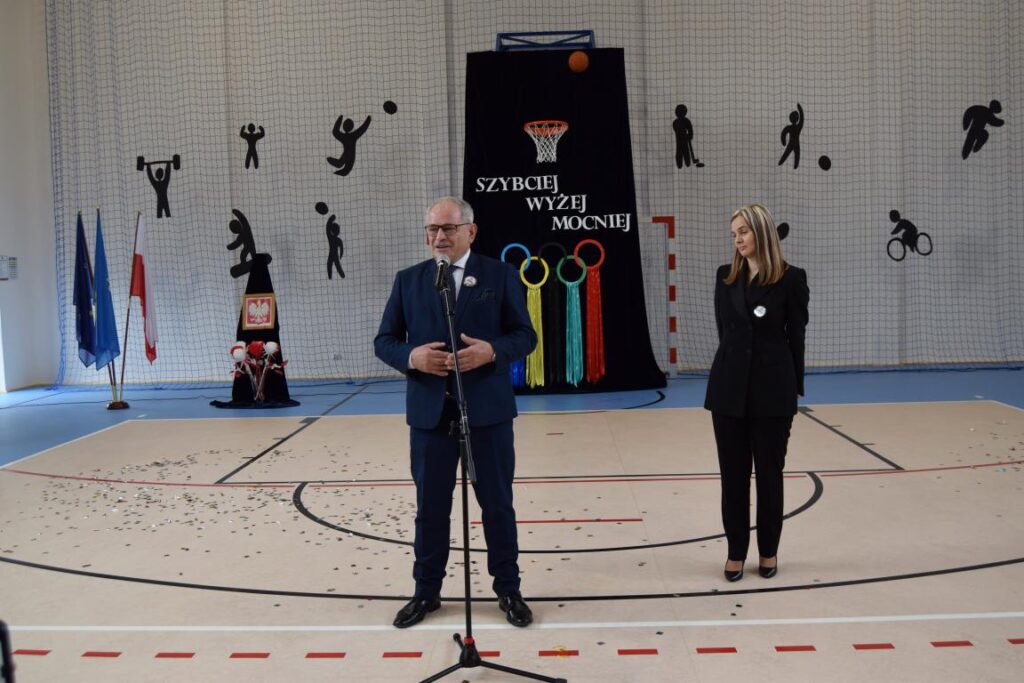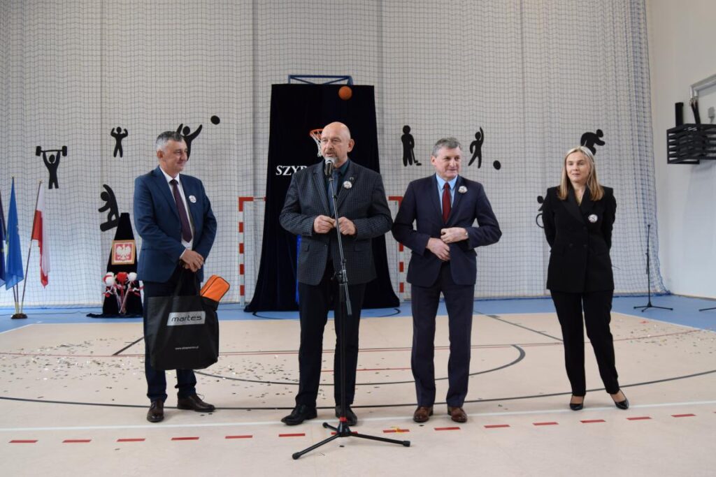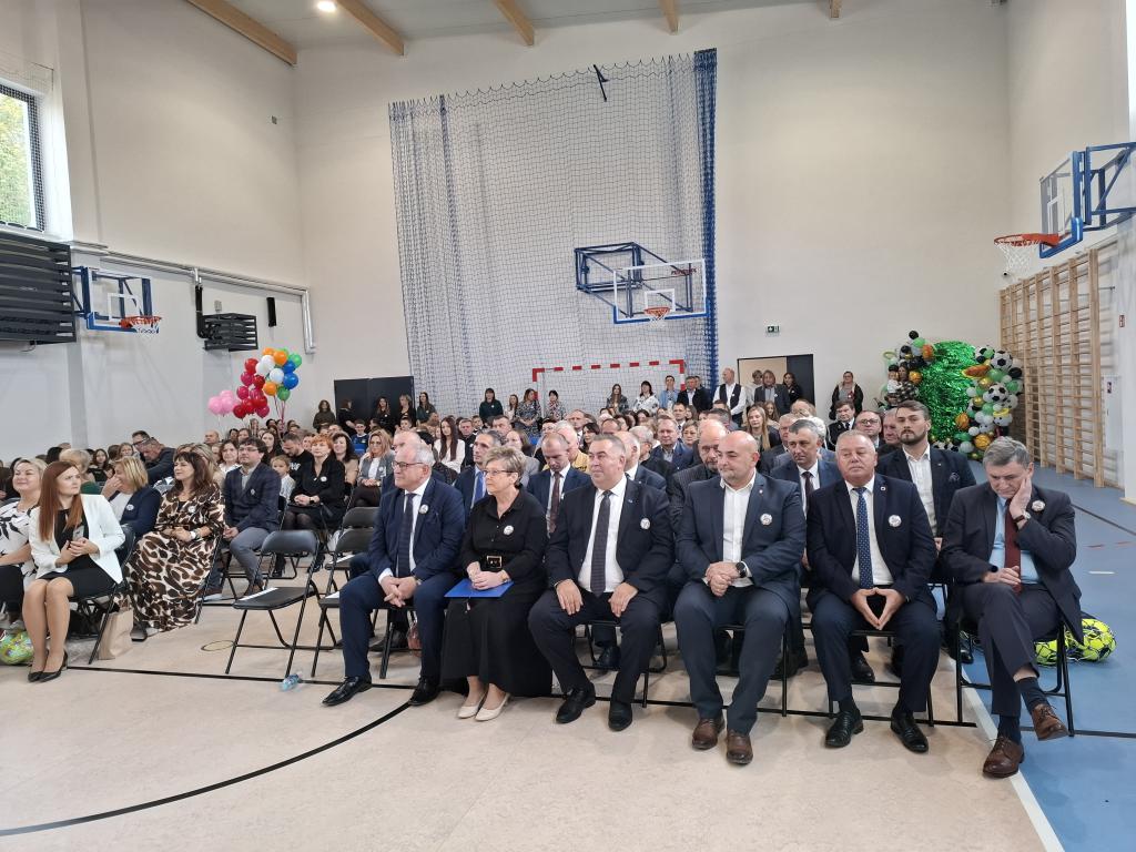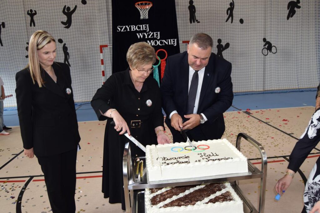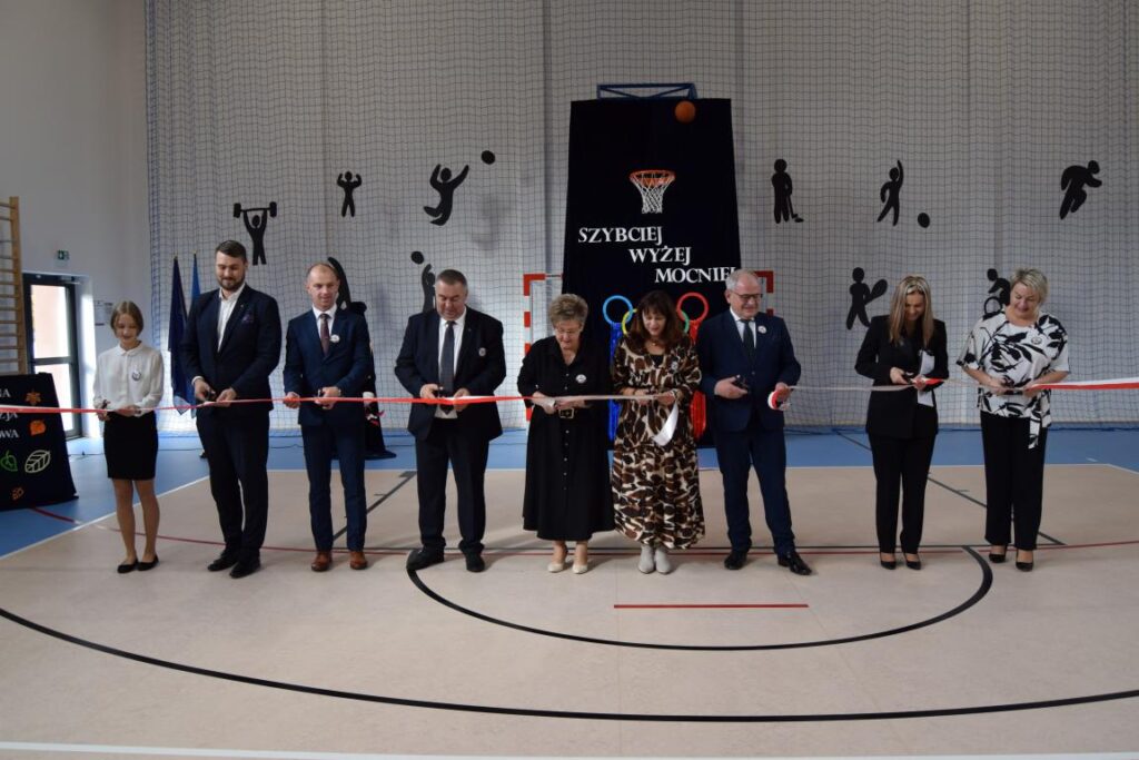 Po wystąpieniu wójta, dokonano symbolicznego przecięcia wstęgi na znak oficjalnego oddania do użytku nowego obiektu. Halę sportową poświęcił także lokalny proboszcz. Kolejne słowa uznania i podziękowania wygłaszali zaproszeni goście. Była to również sposobność do wręczenia prezentów na ręce dyrekcji szkoły oraz złożenia podziękowań pod adresem tych, którzy najbardziej przyczynili się do realizacji inwestycji.