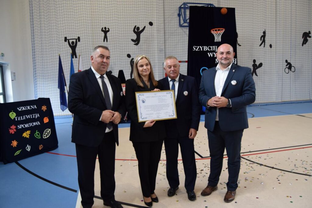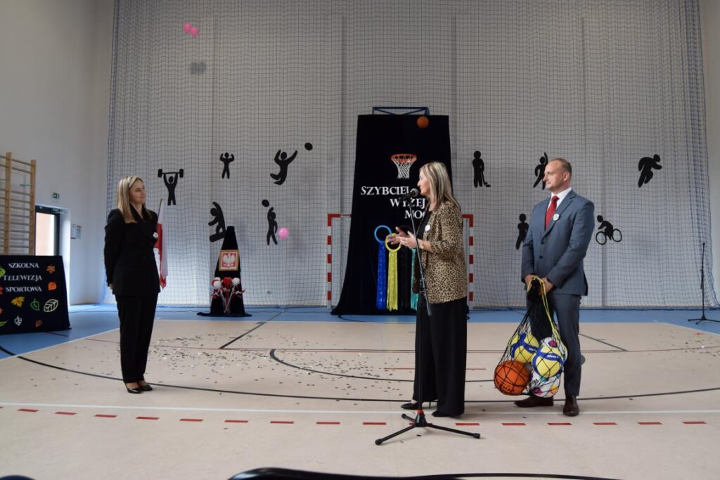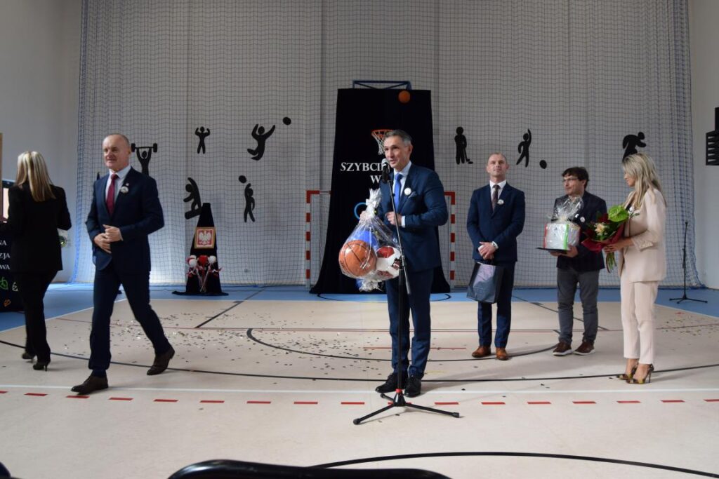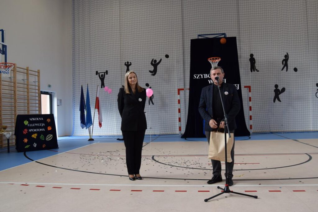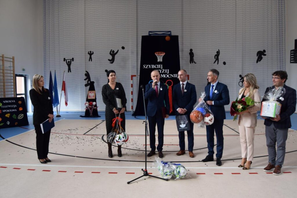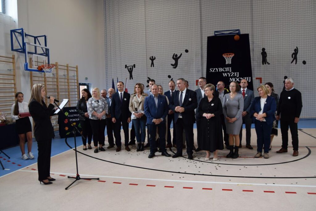 Po wystąpieniu wójta, dokonano symbolicznego przecięcia wstęgi na znak oficjalnego oddania do użytku nowego obiektu. Halę sportową poświęcił także lokalny proboszcz. Kolejne słowa uznania i podziękowania wygłaszali zaproszeni goście. Była to również sposobność do wręczenia prezentów na ręce dyrekcji szkoły oraz złożenia podziękowań pod adresem tych, którzy najbardziej przyczynili się do realizacji inwestycji.
