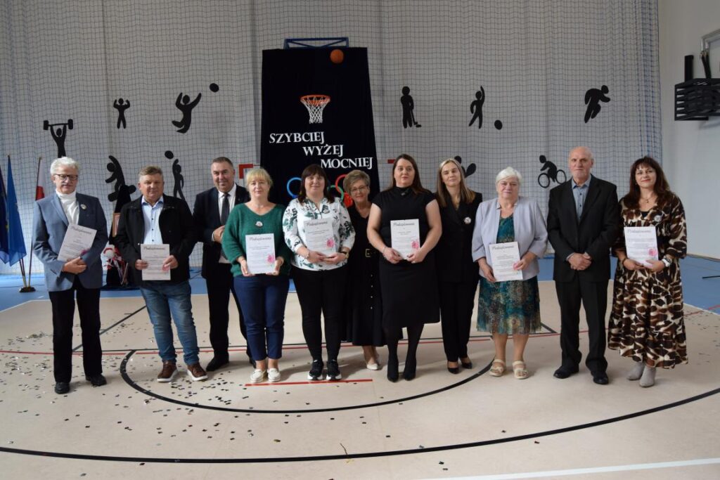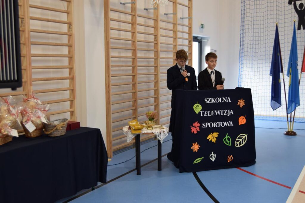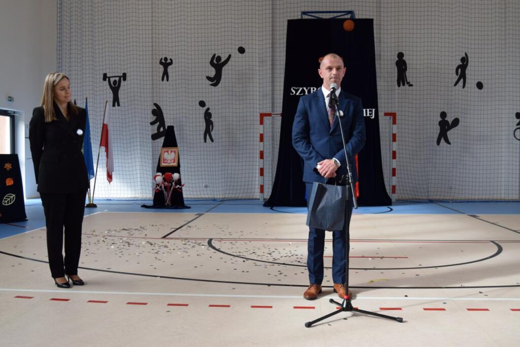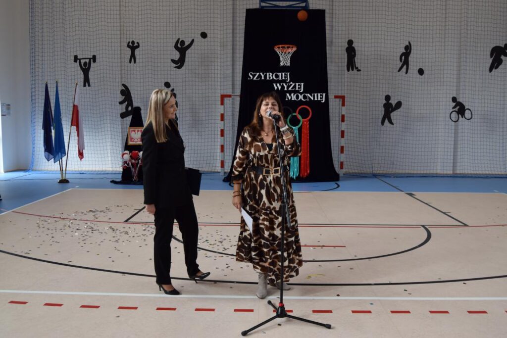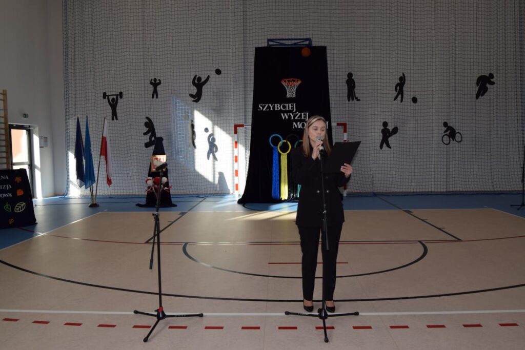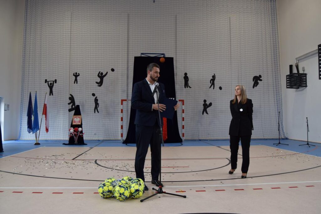Uroczystość zainaugurowała dyrektor Szkoły Barbara Gągorowska, która powitał przybyłych gości w tym przedstawicieli władz wojewódzkich, powiatowych, samorządowych oraz lokalnych, lokalni przedsiębiorcy oraz duchowni. Następnie głos zabrała wójt gminy Grażyna Lasek, prezentując pokrótce historię zamysłu, planowania oraz powstawania inwestycji. Ponadto podziękowała wszystkim zaangażowanym w budowę hali, w tym pracownikom urzędu oraz wykonawcom. – Mam nadzieję, że na tym obiekcie swoje pierwsze kroki będą stawiać przyszłe gwiazdy sportu, aby później odnosić sukcesy na arenie krajowej i międzynarodowej – powiedziała Grażyna Lasek.