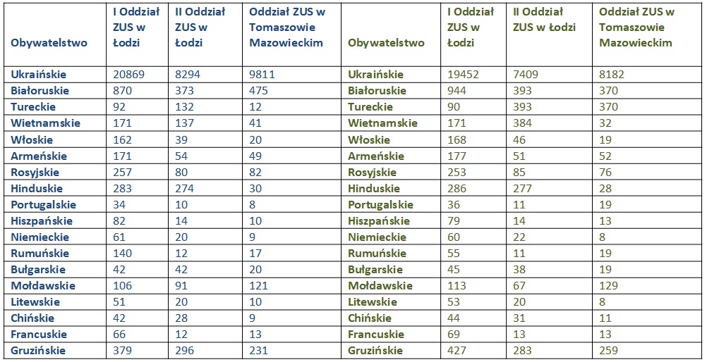 Niemal 650 tys. cudzoziemców opłaca składki na ubezpieczenia społeczne w Polsce. Zdecydowanie największą grupą ubezpieczonych obcokrajowców w kraju są obywatele Ukrainy. W województwie łódzkim mamy 44 tys. wszystkich obcokrajowców pozostających w ubezpieczeniu i 80 procent z nich to właśnie obywatele Ukrainy.
