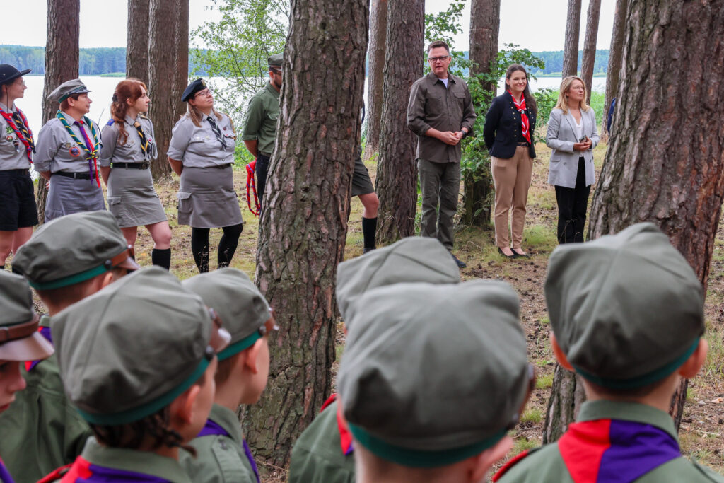 W przekazaniu flagi i wizycie na bazie harcerskiej udział wzięła również Katarzyna Nowakowska – aktualnie wiceministra rodziny, pracy i polityki społecznej, a równocześnie harcmistrzyni i wieloletnia instruktorka harcerska Hufca ZHP Piotrków Trybunalski i Chorągwi Łódzkiej. – Harcerze stanowią ważne ogniwo, jeśli mówimy o sytuacjach kryzysowych. Uczą pierwszej pomocy, dyscypliny, organizacji w trudnych sytuacjach. Są ważnym partnerem w edukowaniu dzieci i młodzieży, ale też w sytuacjach trudnych – przykładem był wybuch wojny w Ukrainie. Bez zawahania ruszyli z pomocą. To ważne by wspierać rozwój organizacji harcerskich, potrzebujemy ich – mówi wiceministra.