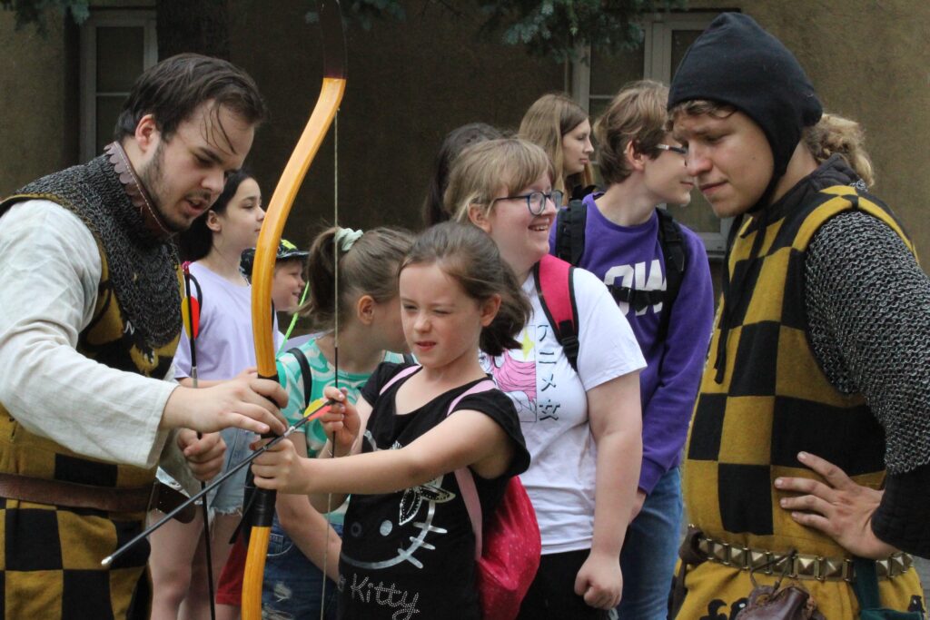 Podopieczni Świetlicy poznali wybrane piotrkowskie legendy, ale mieli też możliwość spotkać się ze smokami. – Duże zainteresowanie wzbudziła archeologiczna piaskownica i możliwość znalezienia skarbu przy pomocy wykrywacza metali. Niecodziennych emocji dostarczyły jak zawsze pokazy rycerskie. Chętni mogli stoczyć pojedynek z rycerzami, przymierzyć elementy rycerskich zbroi, czy spróbować strzelania z łuku i kuszy. Przygotowano też zabawy zręcznościowe i to nie tylko te nawiązujące do średniowiecza. Pasjonaci motoryzacji mogli spróbować sił w pokonaniu toru zdalnie sterowanym pojazdem, co jak się okazało, nie należało wcale do łatwych zadań. Jeśli ktoś wolał jednak spokojniej spędzić czas, to mógł np. zasiąść w koronie na królewskim tronie, spróbować pisania gęsim piórem, wybić monetę, czy wykonać pracę plastyczną. Dla najaktywniejszych czekały słodkości. – relacjonuje Paweł Kendra z piotrkowskiego Muzeum.