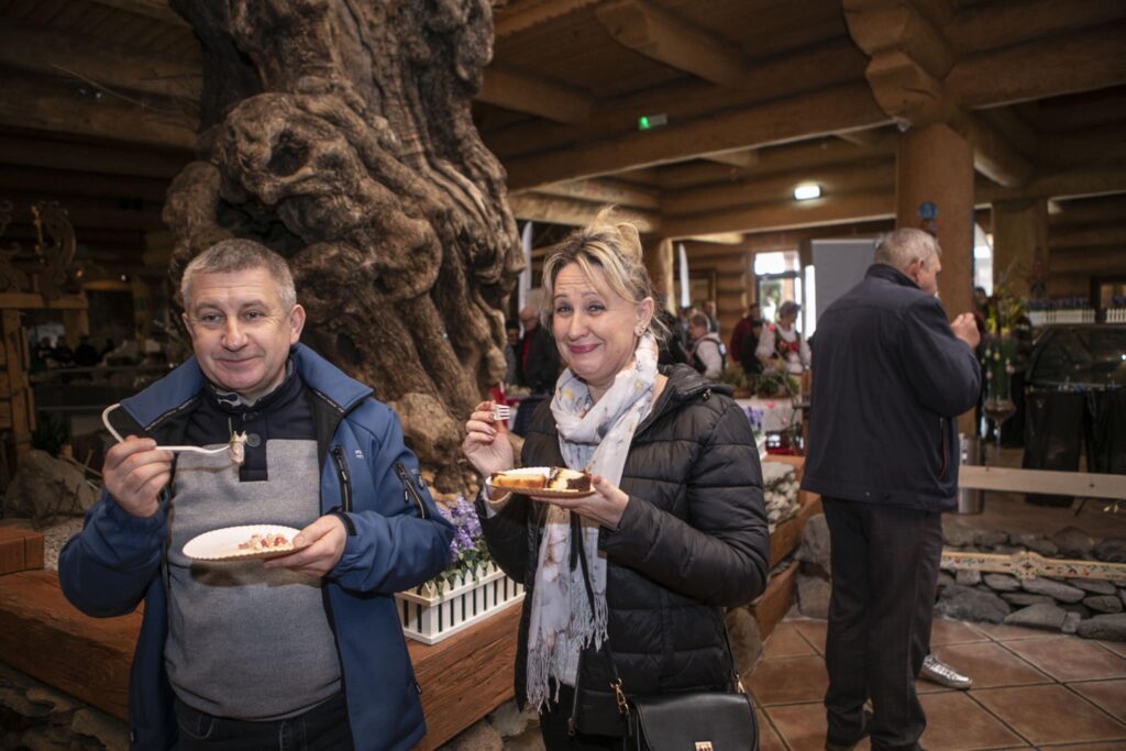 – Pokazujemy dzisiaj pasztet z żurawiną, a także pasztet z cukinii. Na naszym stoisku znajdziemy przeróżne sałatki, pasty, koreczki, wędliny oraz różne tradycyjne ciast i mazurki – mówi Sandra Nowicka z KGW Bagno.
