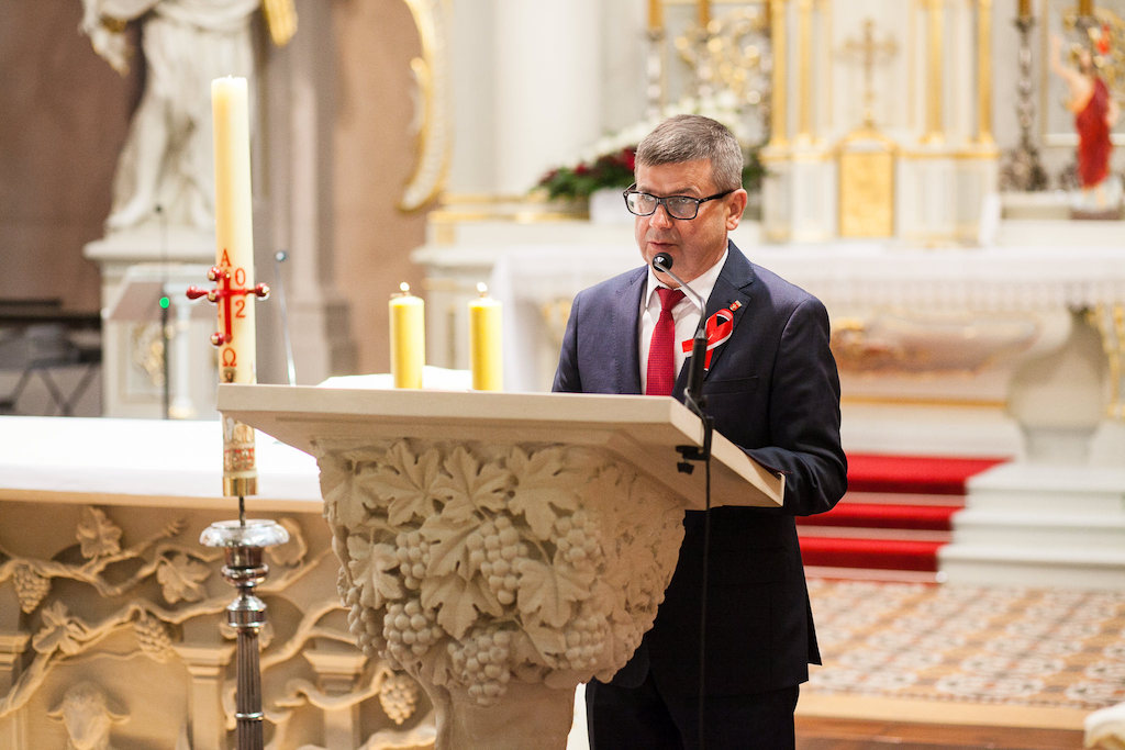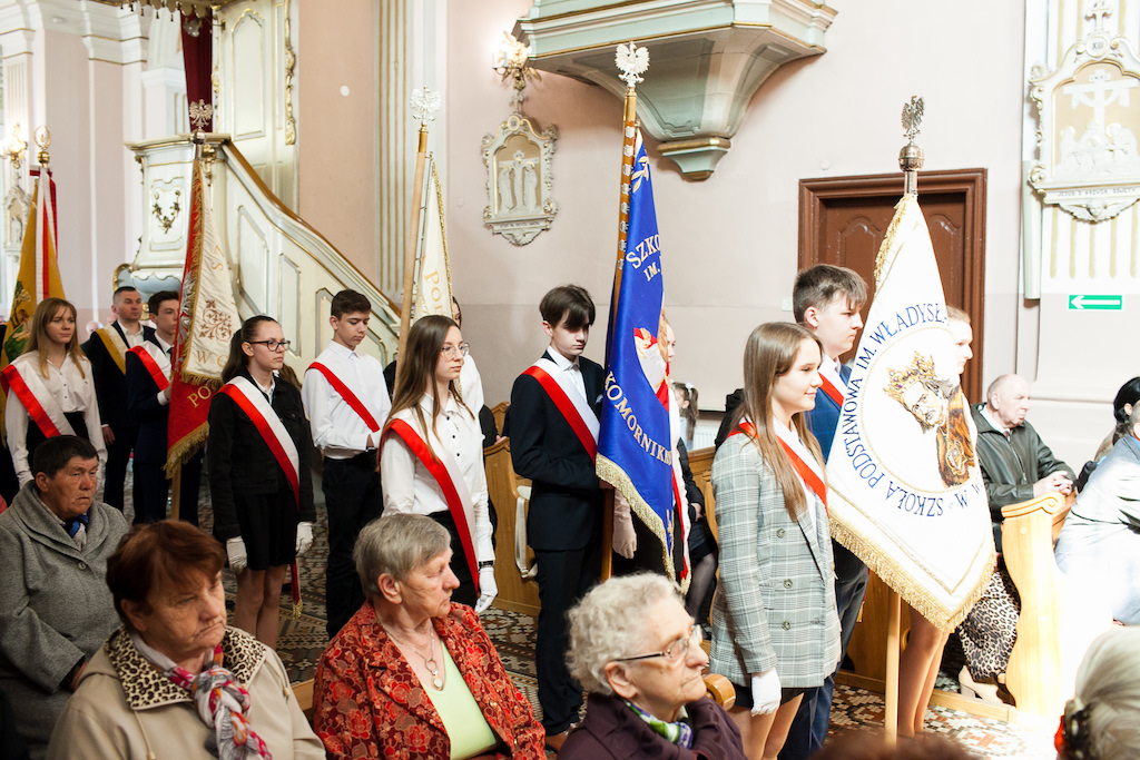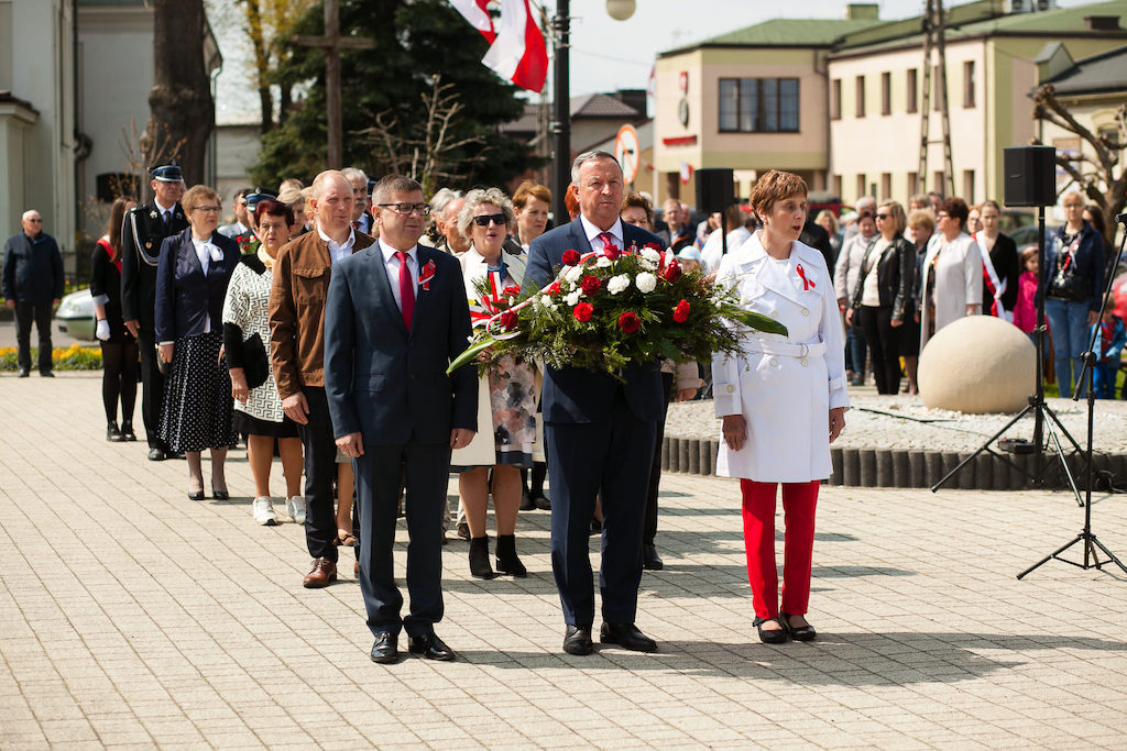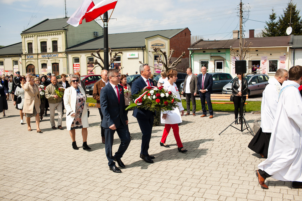 Na apel burmistrza Andrzeja Jarosa do uczczenia i świętowania rocznicy uchwalenia Konstytucji 3 maja odpowiedziała duża grupa mieszkańców, którzy licznie uczestniczyli w Mszy Świętej za Ojczyznę celebrowanej przez ks. Tomasza Owczarka w kolegiacie.