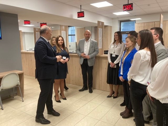 Pierwszego klienta – mieszkańca gminy Sulejów – powitał starosta Piotr Wojtysiak oraz sekretarz Ireneusz Czerwiński. W nowej siedzibie można załatwić wszelkie sprawy związane z rejestracją pojazdów, wydaniem prawa jazdy, licencji i zezwoleń transportowych, utrzymaniem i modernizacją powiatowej infrastruktury drogowej, a także te dotyczące pomocy społecznej, pieczy zastępczej i osób niepełnosprawnych.
