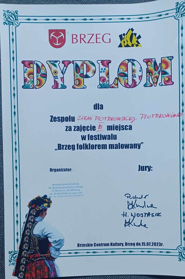 III miejsce na ogólnopolskim festiwalu „Brzeg folklorem malowany” zdobył Zespół Ludowy Ziemi Piotrkowskiej Piotrkowianie, który odbywał się w miniony weekend w Brzegu, w województwie opolskim. Podczas festiwalu zaprezentowało się 18 zespołów z całej Polski.