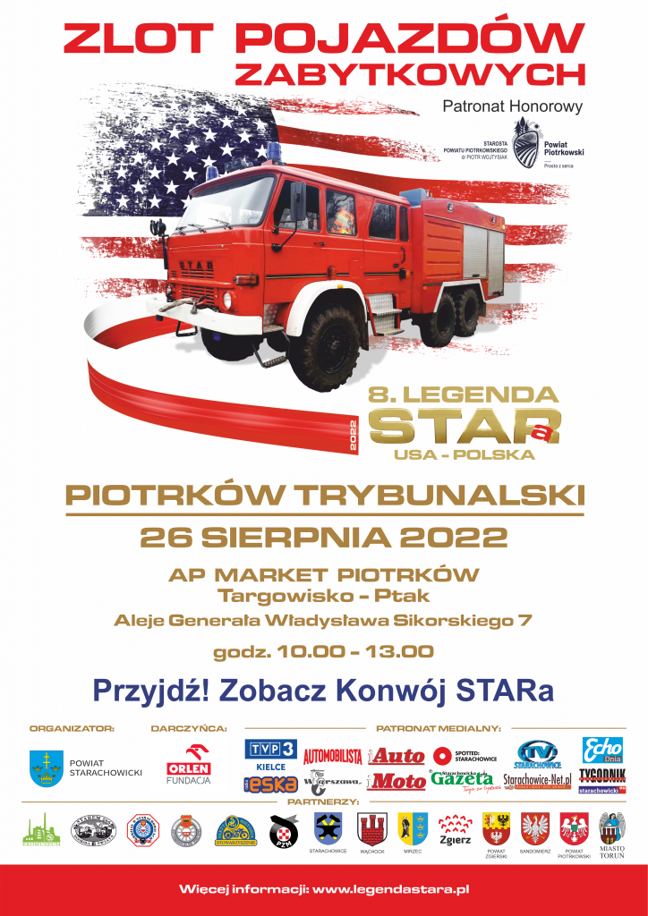 – Dziękujemy za pomoc i wsparcie Starosty Piotra Wojtysiaka, który objął honorowym patronatem konwoje STARa w Piotrkowie Trybunalskim. Już dziś zapraszamy serdecznie, zarówno sympatyków, jak i posiadaczy zabytkowych ciężarówek do udziału w tym wyjątkowym wydarzeniu. – dodaje starosta starachowicki.