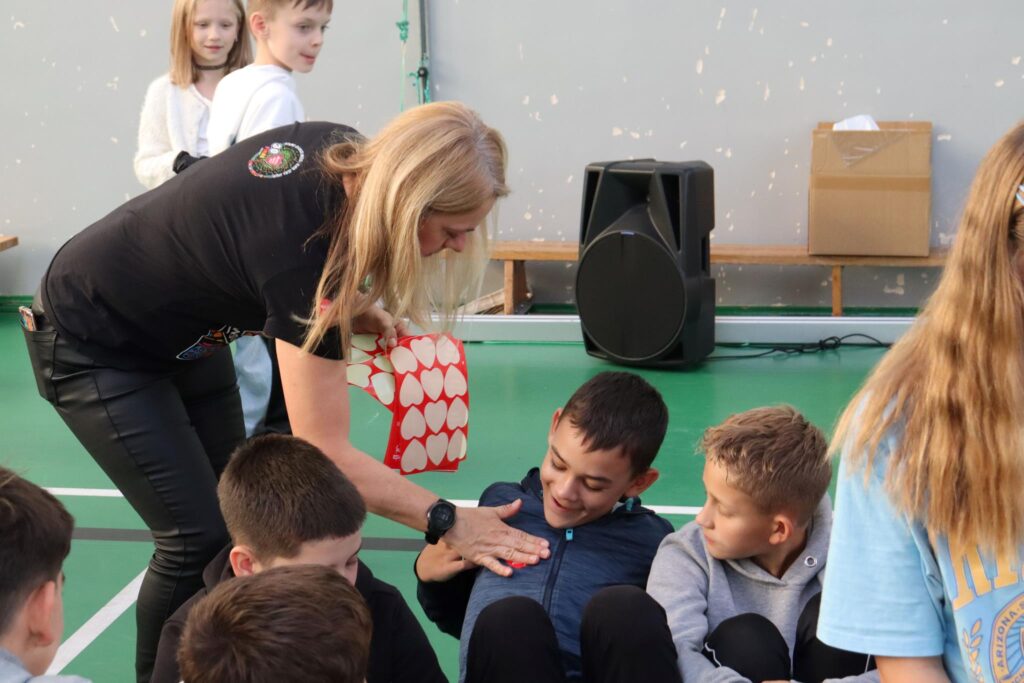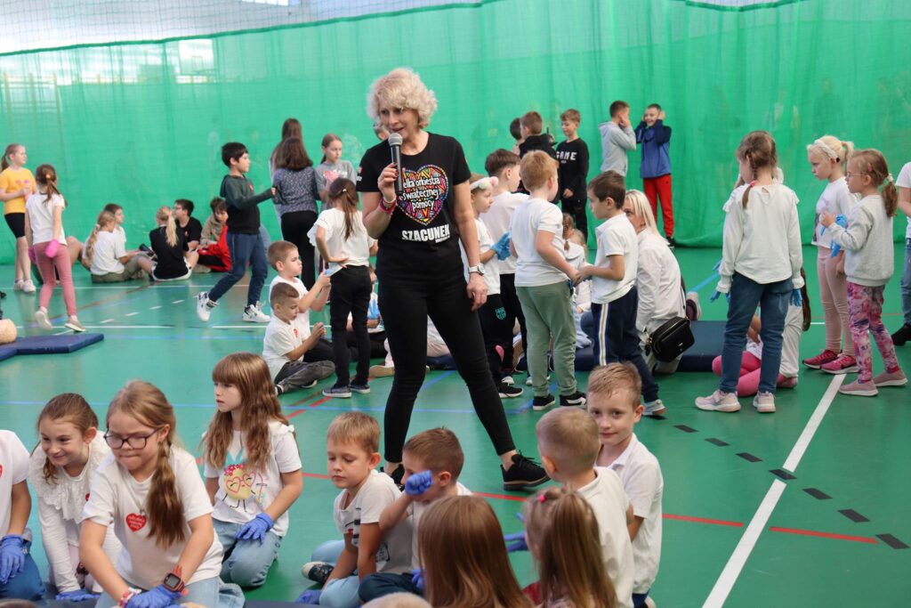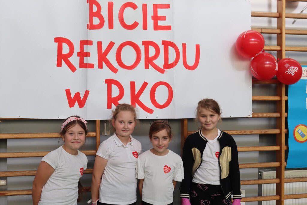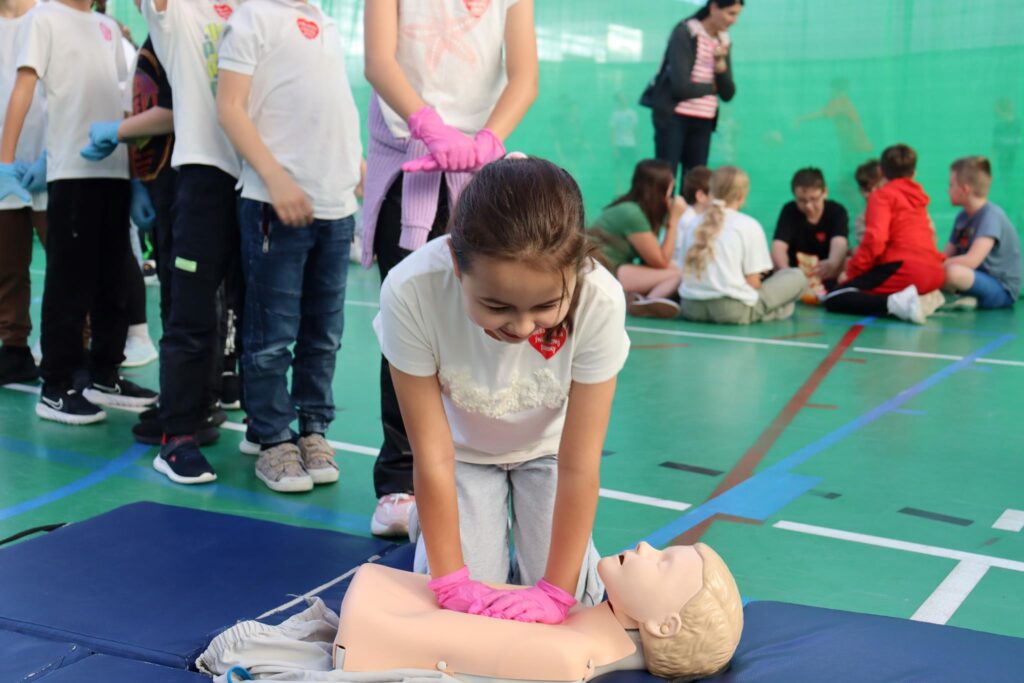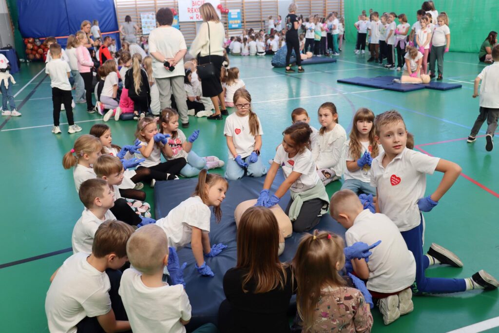 – W akcji uczestniczyli najmłodsi uczniowie naszej szkoły z klas: 1a, 1b, 1c, 1d, 2b, 2c, 2d, i 2e z wychowawcami oraz klasy 5e i 6c, łącznie 238 uczniów. Przez 30 min od godz. 12.00 do godz. 12.30 prowadzona była nieprzerwanie RKO metodą samych uciśnięć klatki piersiowej, tj. bez wdechów, ale zgodnie z regulaminem, każdy uczestnik miał możliwość wykonywania uciśnięć przez 1 minutę – dodaje Marta Szafranek.