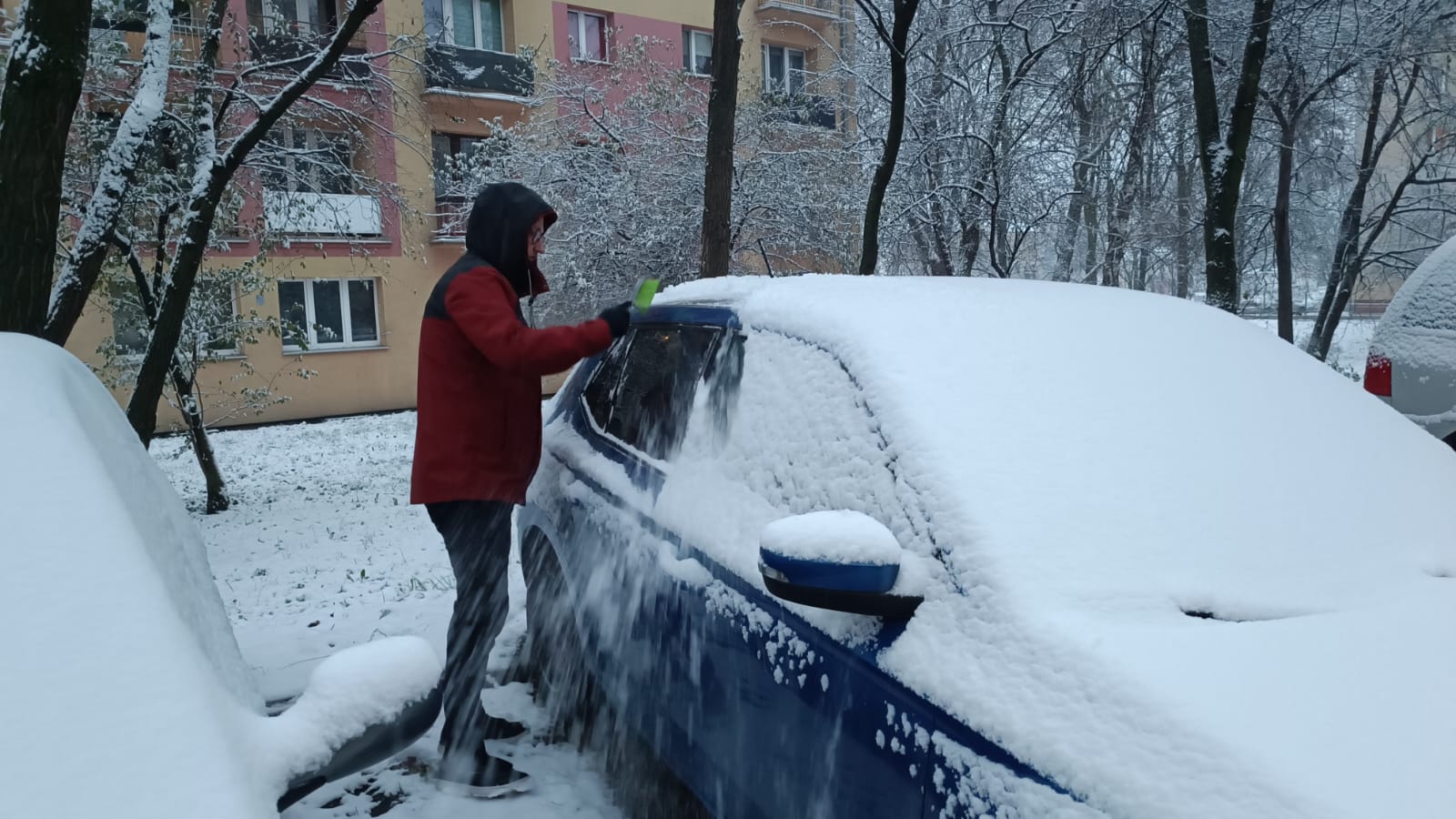 Zgodnie z przewidywaniami synoptyków, do naszego regionu zawitała prawdziwa zima. Nad ranem w czwartek spadł śnieg, dlatego wszystko zrobiło się białe. Ci którzy nie parkują swoich samochodów w garażu, musieli wyjść z domu nieco wcześniej i odśnieżyć swoje samochody. Pamiętajcie, że na drogach panują trudne warunki do jazdy. Jezdnie są śliskie, dlatego należy zachować szczególna ostrożność.