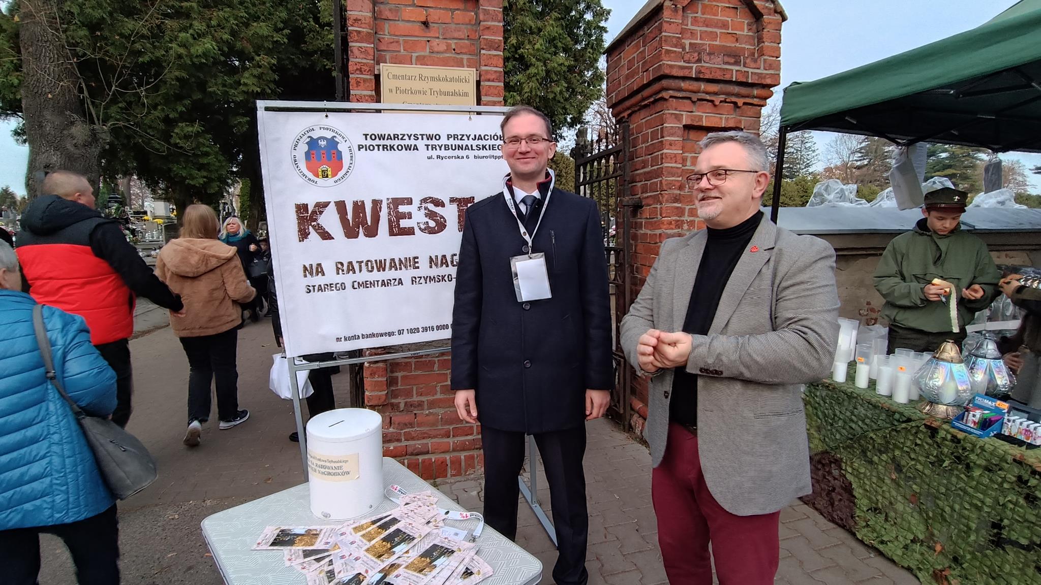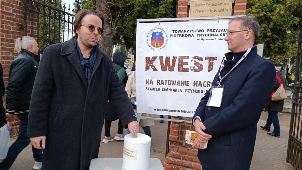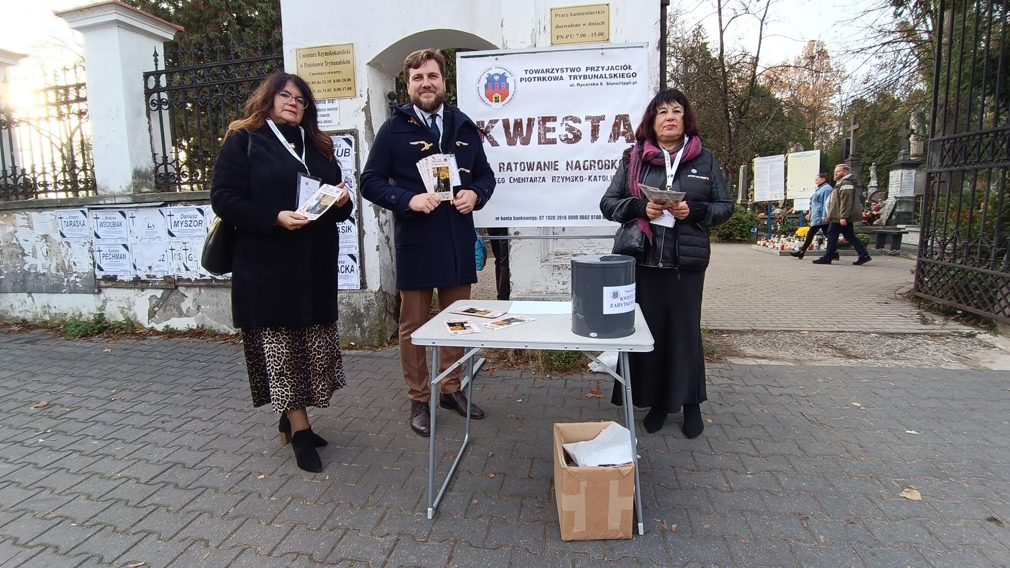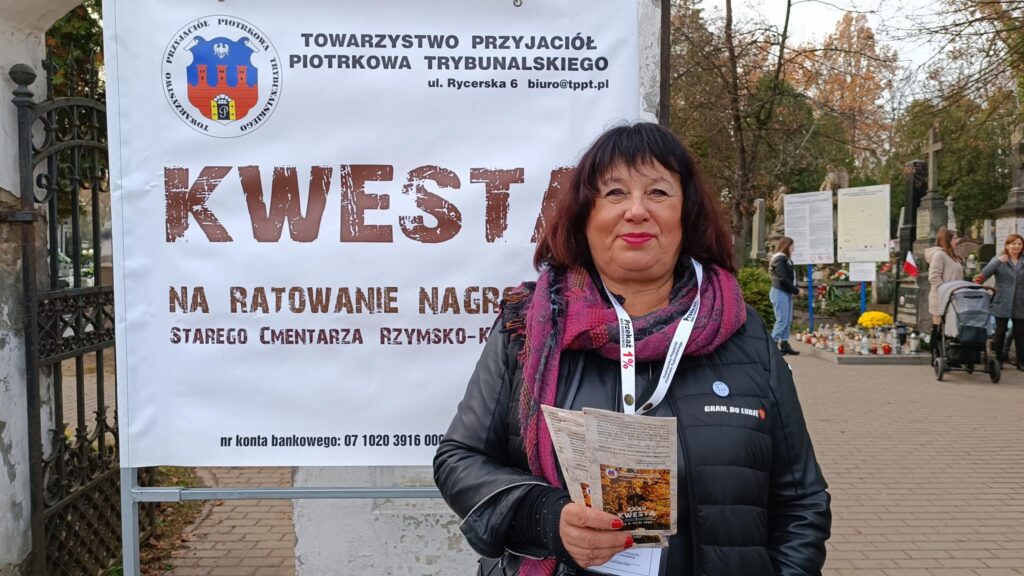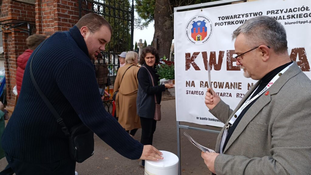 Przełom października i listopada to także kwesta na ratowanie cmentarzy. W tym roku to już 35. zbiórka. – Odwiedzający piotrkowskie cmentarze są bardzo hojni i przyjacielscy. Właściwie wszyscy już wiedzą na jaki cel zbierane są pieniądze, bo to jest już 35. zbiórka. Każdy jest zorientowany na co idą ich fundusze. My przekazujemy ulotki z informacjami co było zrobione w ubiegłym roku i poprzednich latach – mówi Małgorzata Pingot. – Dowiedziałam się dziś, że byliśmy trzecim miastem po Warszawie i Krakowie w którym zaczęto zbierać pieniądze na tarowanie pomników. A do naszej puszki wpadają nie tylko monety czy 10-złotówki ale także 20-tki, 50-tki i 100, a trafiło się nawet 200 złotych – dodaje.