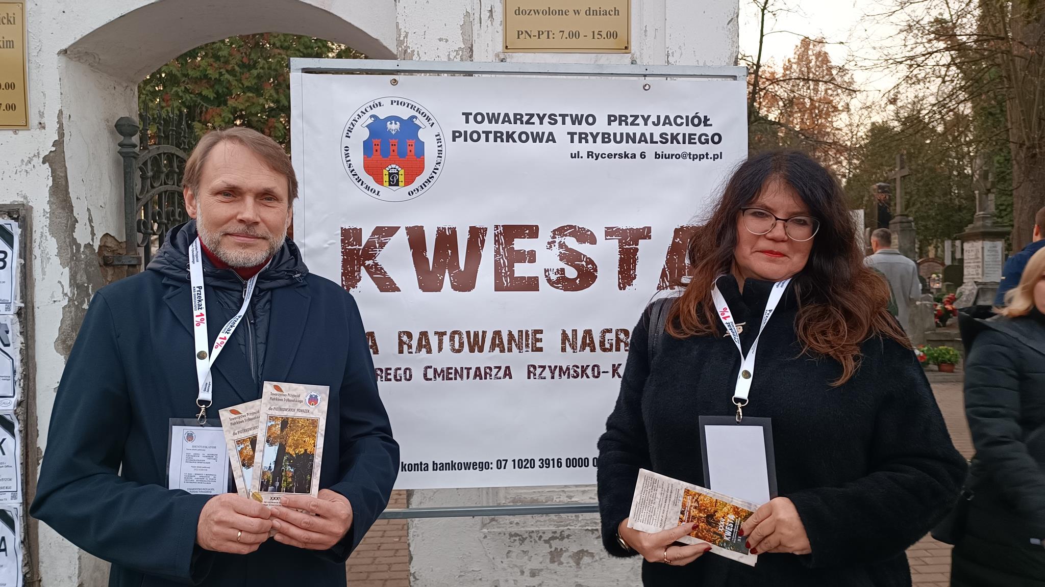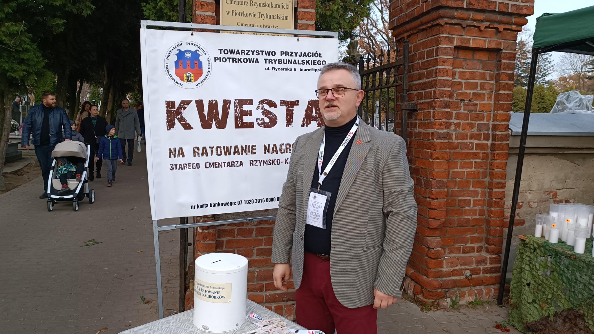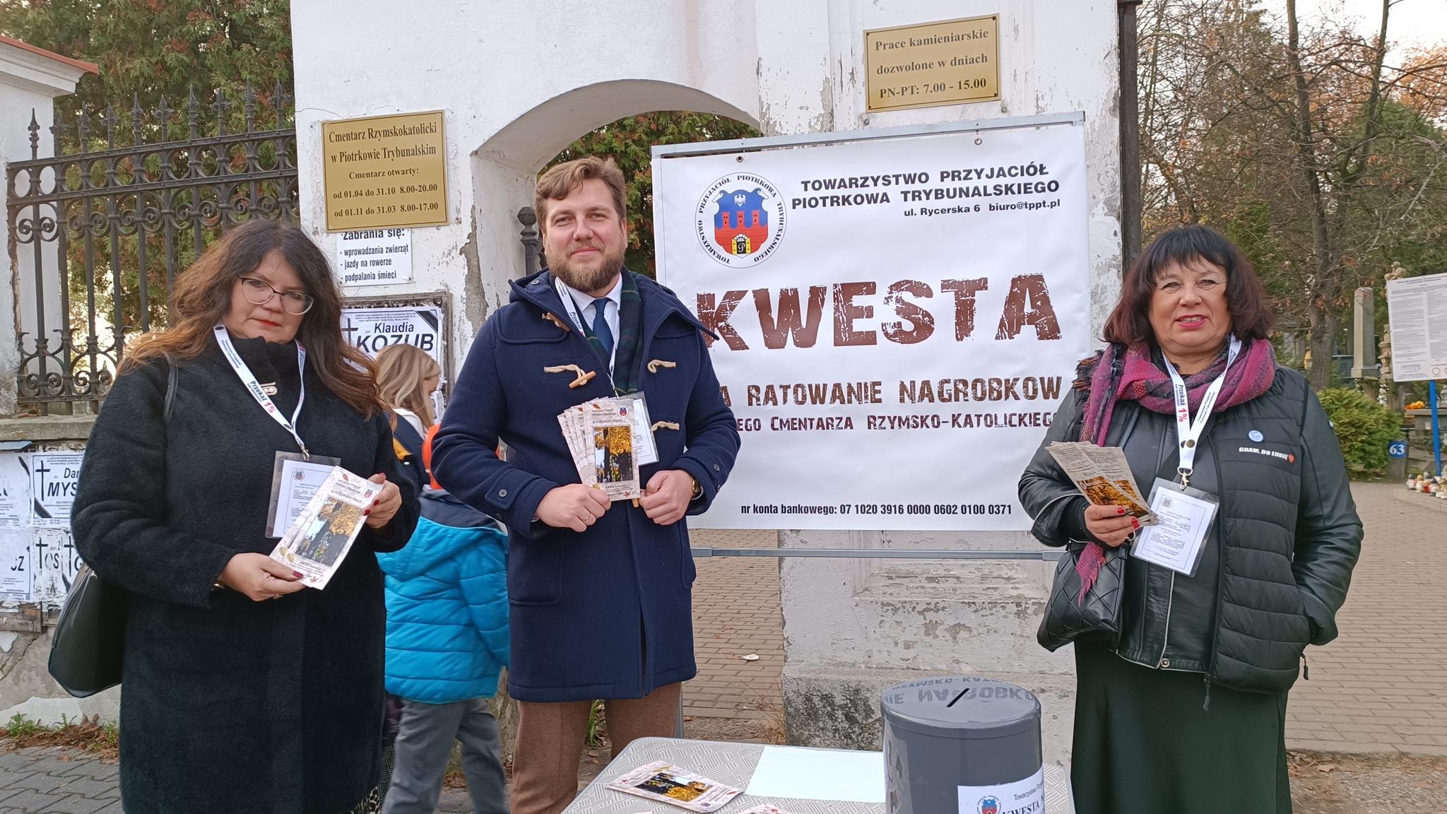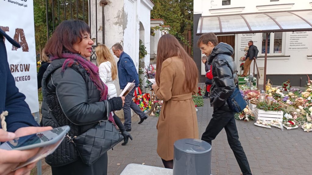 Przełom października i listopada to także kwesta na ratowanie cmentarzy. W tym roku to już 35. zbiórka. – Odwiedzający piotrkowskie cmentarze są bardzo hojni i przyjacielscy. Właściwie wszyscy już wiedzą na jaki cel zbierane są pieniądze, bo to jest już 35. zbiórka. Każdy jest zorientowany na co idą ich fundusze. My przekazujemy ulotki z informacjami co było zrobione w ubiegłym roku i poprzednich latach – mówi Małgorzata Pingot. – Dowiedziałam się dziś, że byliśmy trzecim miastem po Warszawie i Krakowie w którym zaczęto zbierać pieniądze na tarowanie pomników. A do naszej puszki wpadają nie tylko monety czy 10-złotówki ale także 20-tki, 50-tki i 100, a trafiło się nawet 200 złotych – dodaje.