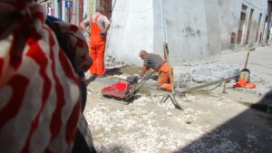 10. Lipiec 2012. Prace brukarskie u zbiegu Starowarszawskiej z Farną. Fot. J. Gnyp.