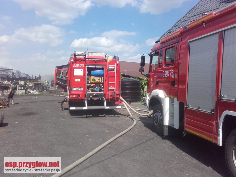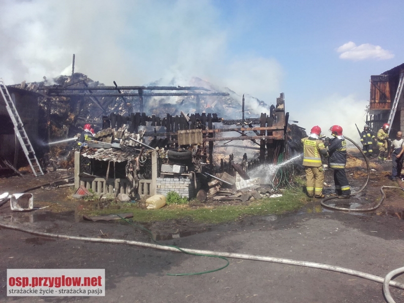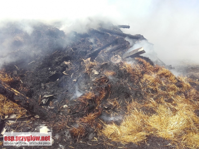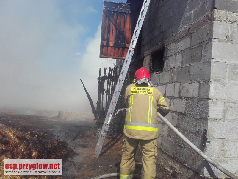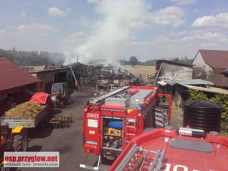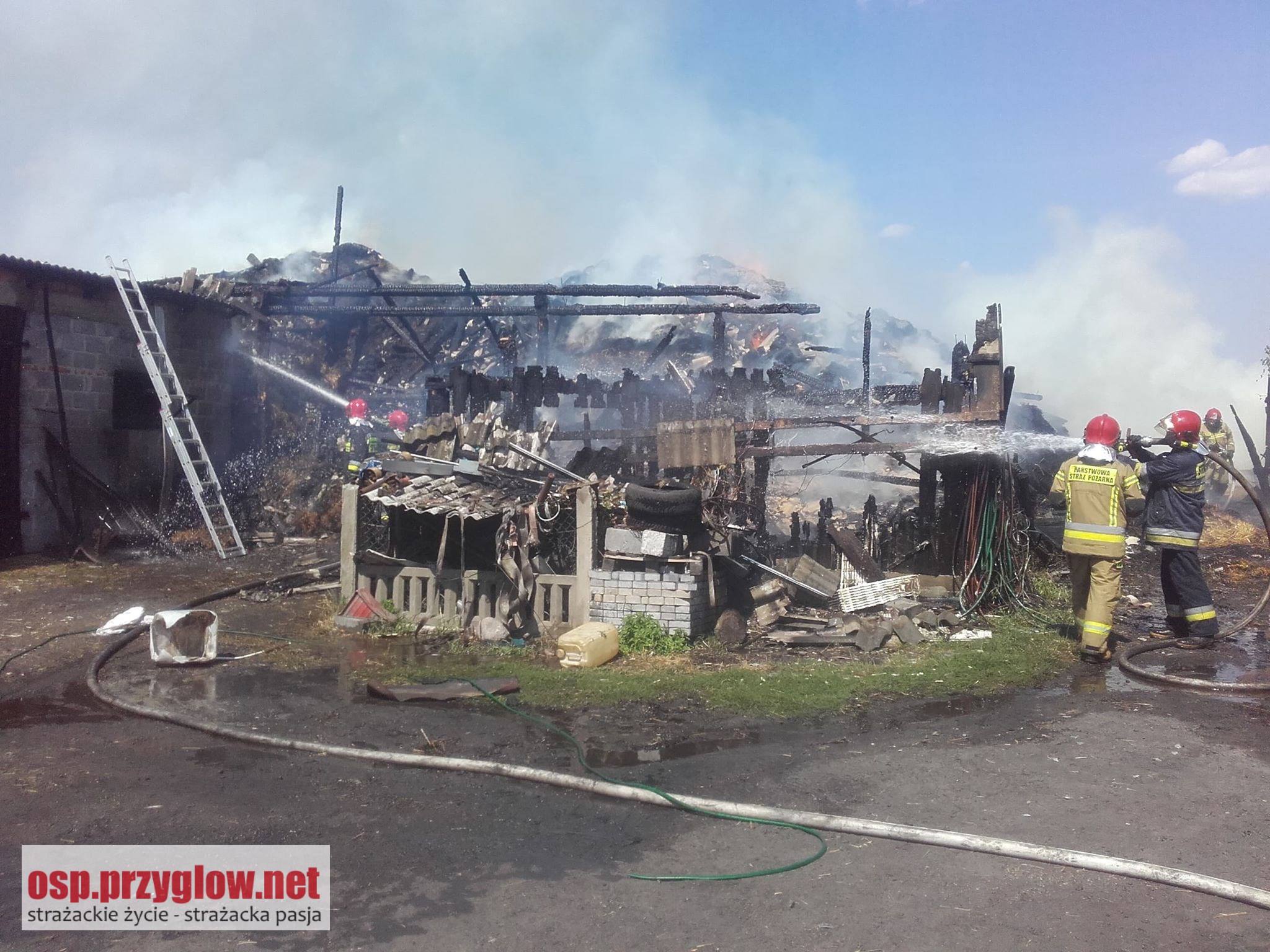 Jak informują strażacy z OSP Przygłów, po przyjeździe na miejsce zdarzenia pierwszych zastępów straży pożarnej okazało się, iż pożarem objęty jest cały budynek stodoły, a ogień przedostaje się na pobliskie zabudowania. Pierwsze działania straży polegały na obronie pozostałych budynków. Niestety mimo sprawnej akcji nie udało się uratować zwierzyny, która znajdowała się w oborze tuż przy płonącej stodole.