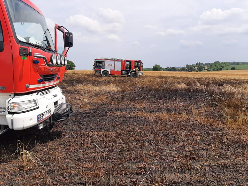 To chyba największy pożar jaki zanotowali piotrkowscy strażacy w tym roku. Ognień strawił ponad 4 hektary rżyska i zbożna. Spalił się także kombajn.
