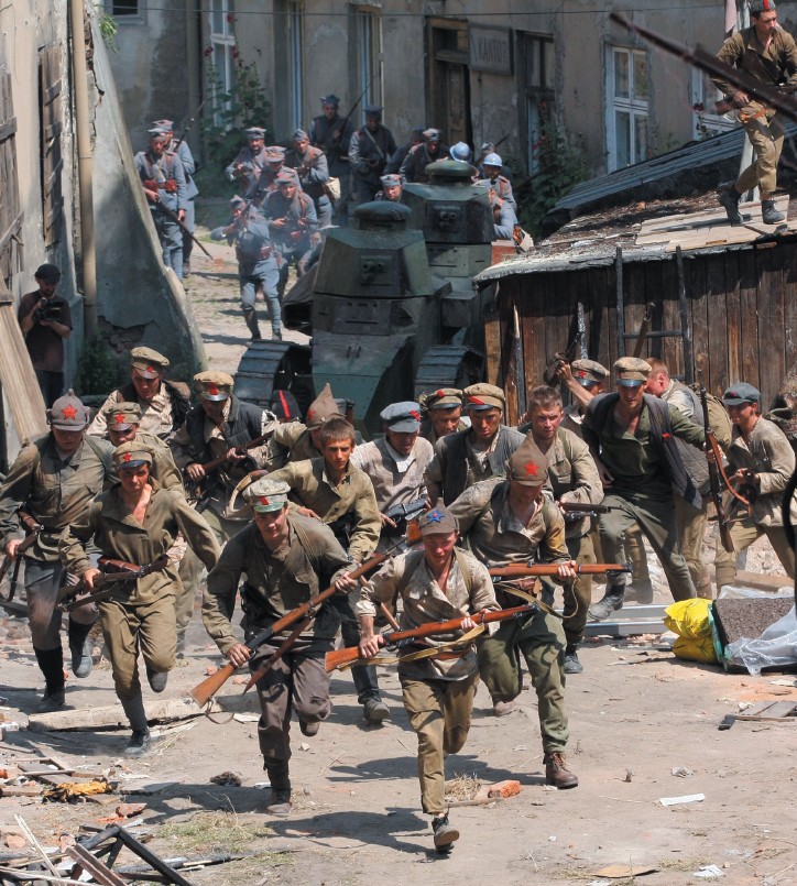 W zdjęciach na planie w Piotrkowie udział wzięło 300 statystów. Większość z nich stanowili mieszkańcy Piotrkowa i okolic. Głównie mężczyźni, którym przyszło wcielić się w szeregowych żołnierzy, zarówno polskich, jak i czerwonoarmistów. Do Piotrkowa, jak mówił na planie Andrzej Szenajch, główny konsultant filmu ds. militariów, zwieziono 500 mundurów, w tym 200 rosyjskich. Wśród polskich m.in. błękitne hallerczyków oraz legionowe, wzór 19. Część z nich uszyto na miarę, głównie te przeznaczone dla aktorów, część pochodziła z zasobów Łódzkiej Filmówki.