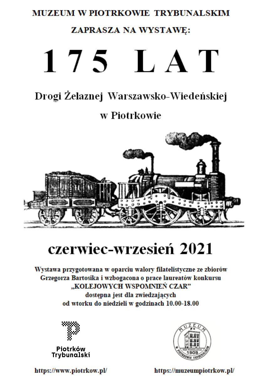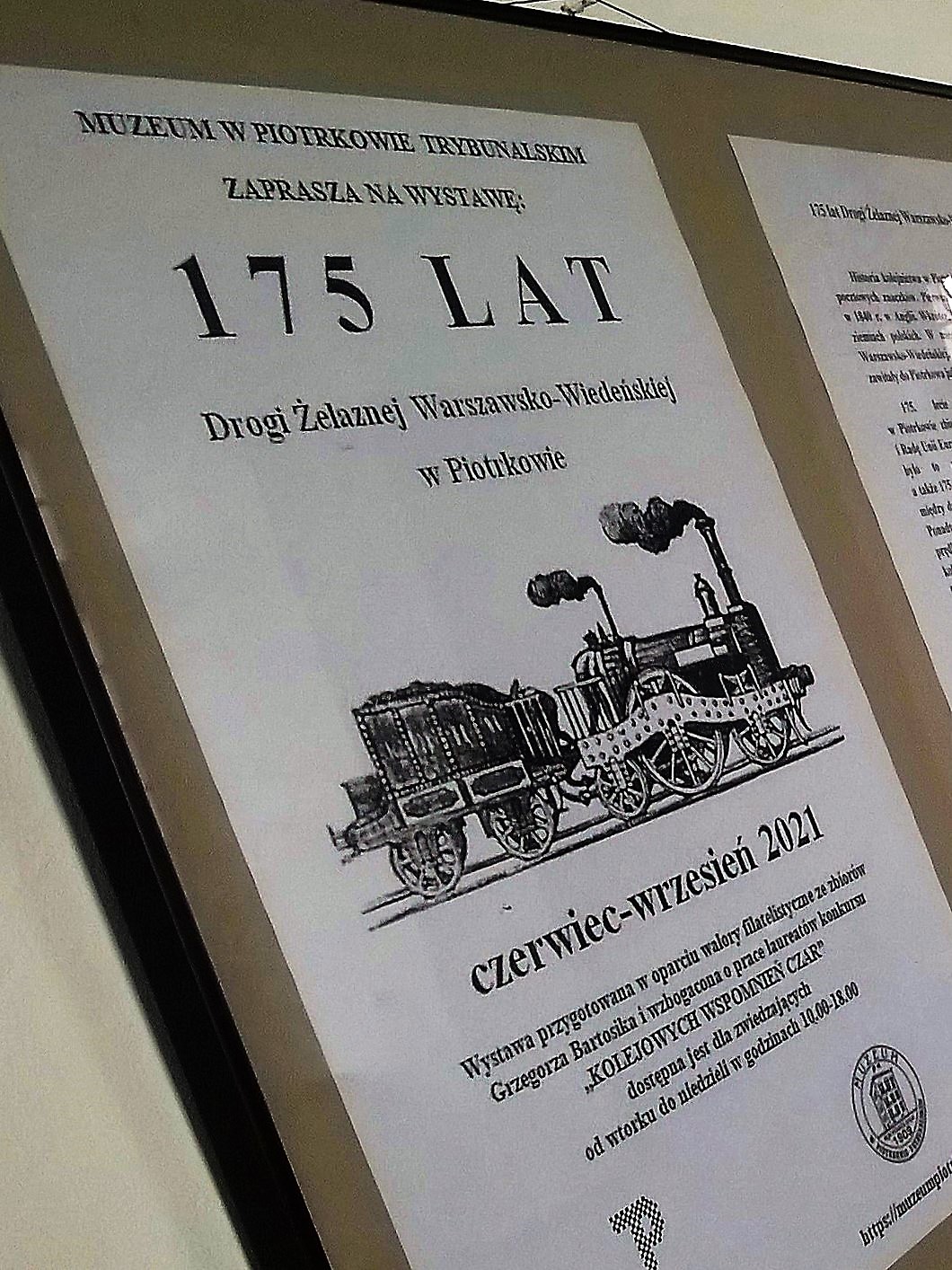 Muzeum w Piotrkowie Trybunalskim chcąc zaakcentować rolę Piotrkowa jako miasta związanego z rozwojem kolejnictwa, przygotowało wystawę filatelistyczną, która prezentowana będzie w miesiącach wakacyjnych, nieodzownie kojarzących się z kolejowymi podróżami. Prezentowane na ekspozycji wybrane walory filatelistyczne pochodzą ze zbiorów Grzegorza Bartosika, w którego kolekcji znajduje się kilkaset znaczków o tematyce kolejowej emitowanych nie tylko w Polsce.