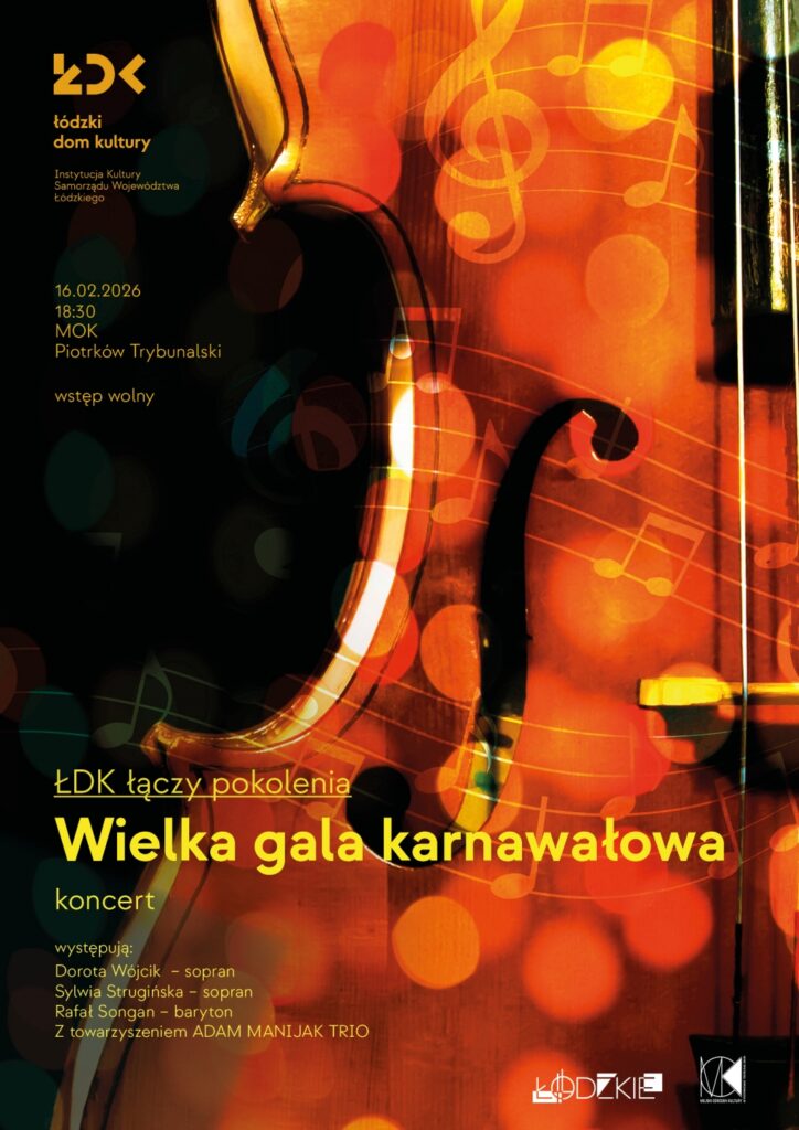 Znajome melodie i energia karnawałowego wieczoru – w ramach cyklu „ŁDK łączy pokolenia” Łódzki Dom Kultury zaprasza na karnawałowy koncert. Program wieczoru otworzy dynamiczna uwertura z „Wilhelma Tella” Gioacchina Rossiniego. W dalszej części publiczność usłyszy m.in. pełen uroku duet „Là ci darem la mano” Wolfganga Amadeusza Mozarta, liryczne „Nella fantasia” Ennia Morricone oraz namiętną arię Toreadora z „Carmen”. Nie zabraknie wzruszeń przy „O mio babbino caro” Giacoma Pucciniego oraz lekkości operetkowych przebojów Johanna Straussa i Franza Lehára.