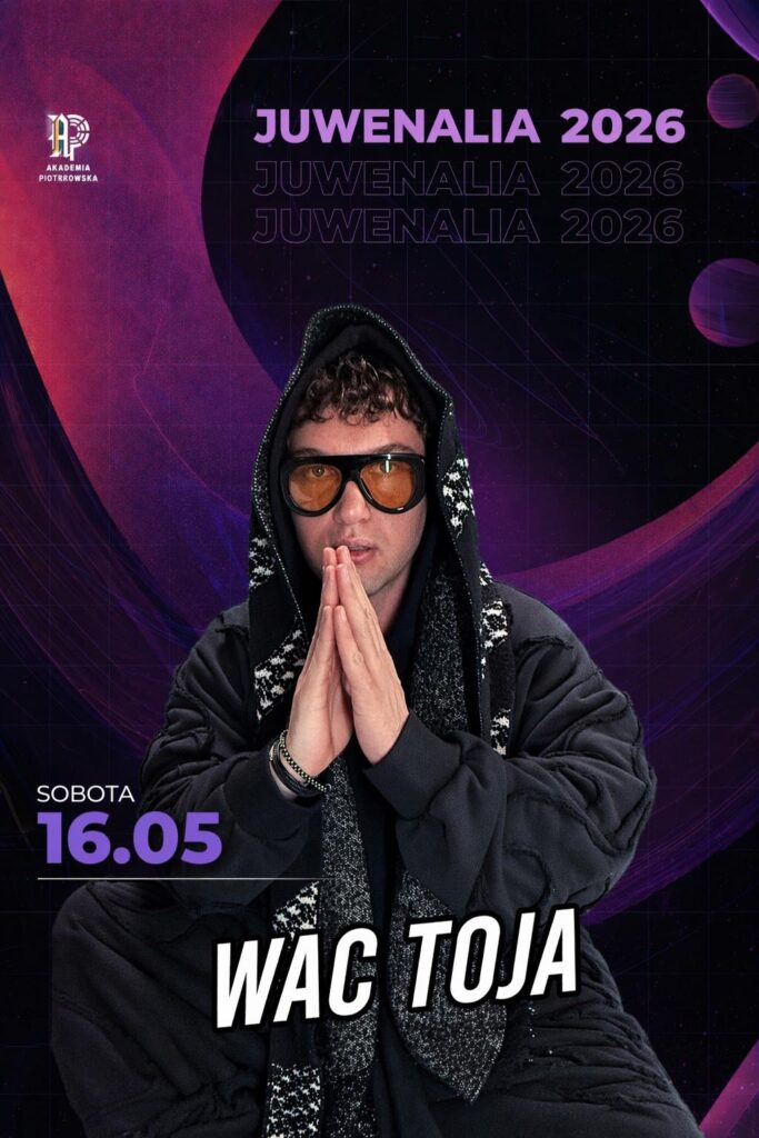 Studenci, szykujcie się na prawdziwe trzęsienie ziemi! Organizatorzy Juwenaliów Akademii Piotrkowskiej 2026 właśnie odsłonili kolejną kartę. Już 16 maja na scenie pojawi się jeden z najbardziej energetycznych artystów w Polsce – Wac Toja.