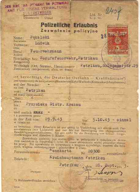 Niemieckie pozwolenie na przejazd koleją wydane strażakowi