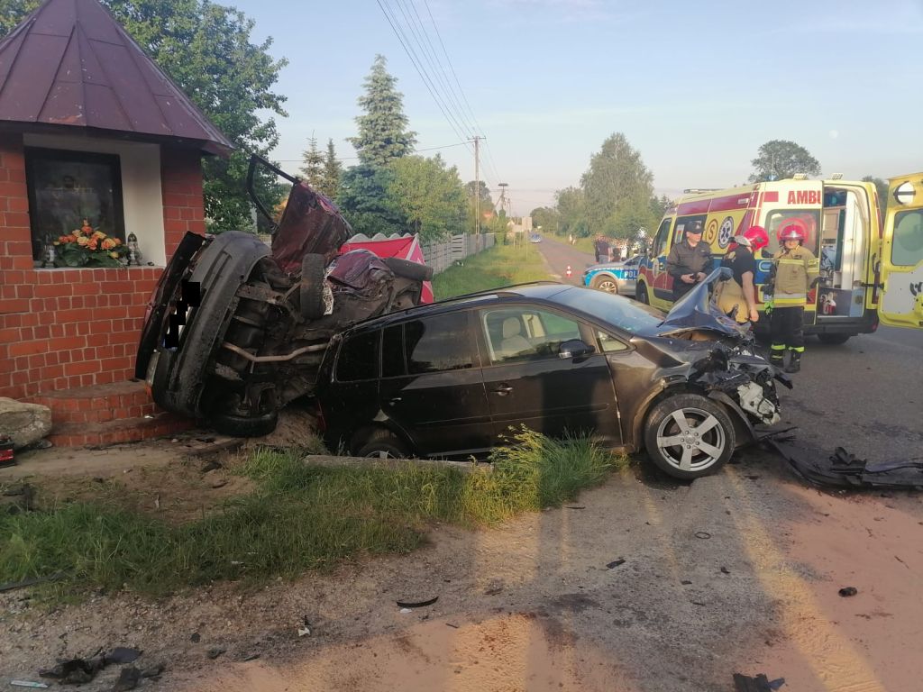 Do tragicznego w skutkach wypadku drogowego doszło w niedzielę (12.06) o godzinie 18:30, w  miejscowości Bujny Szlacheckie na terenie gminy Zelów. Na skrzyżowaniu dróg relacji Zelów – Grabostów i Łobudzice – Kociszew zderzyły się dwie osobówki. Ze wstępnych ustaleń policjantów pracujących na miejscu wynika, że 52-letni mieszkaniec Radomska kierujący oplem astrą, jadąc drogą podporządkowaną od strony Łobudzic w kierunku Zelowa, na skrzyżowaniu dróg nie ustąpił pierwszeństwa przejazdu i uderzył w prawidłowo jadący samochód marki VW Touran, a następnie w przydrożną kapliczkę.