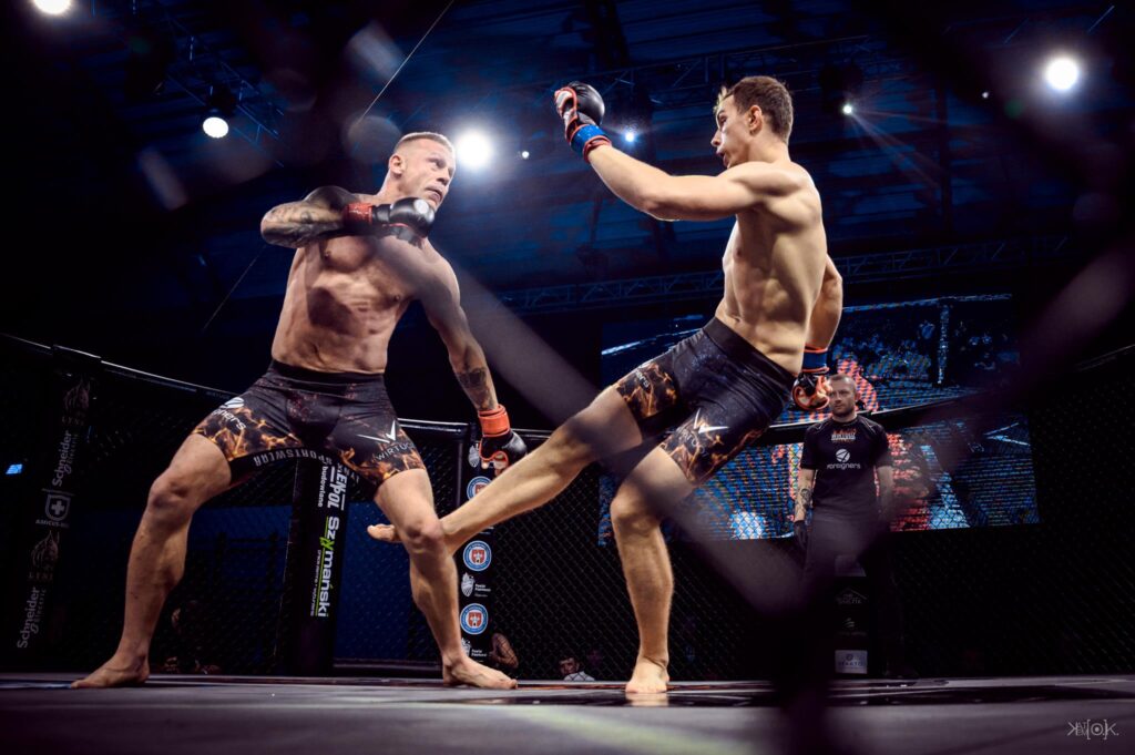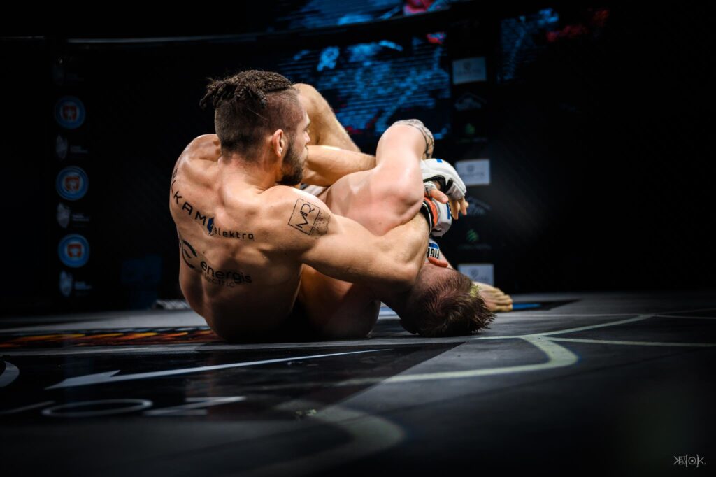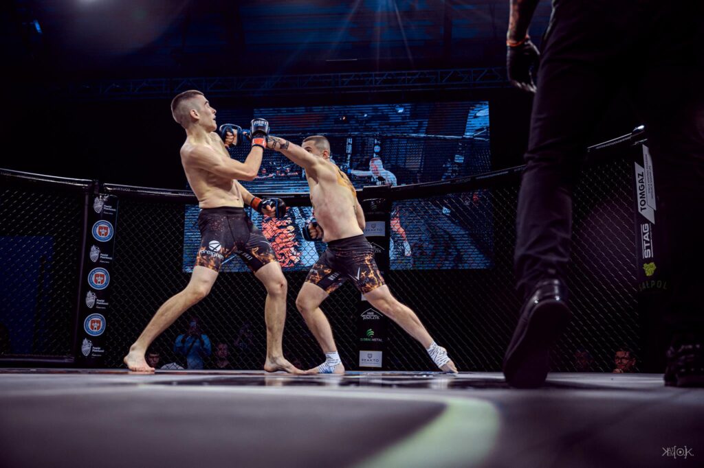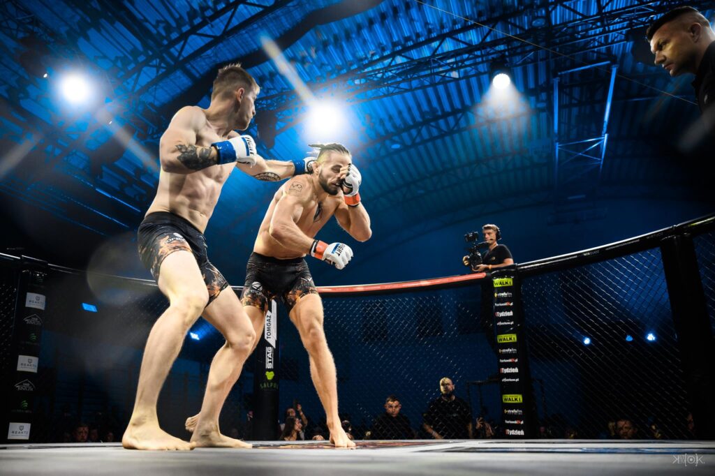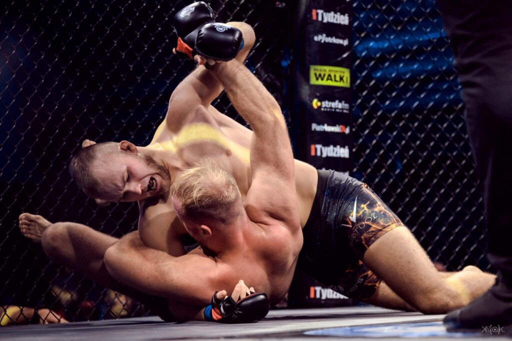 Pojedynek numer trzy, czyli Bartek Kubik (Widzew Łódź – sekcja bokserska) kontra Adrian Gwadera (Bastion Bełchatów). W drugiej rundzie przez duszenie gilotynowe walkę wygrywa zawodnik z Bełchatowa.