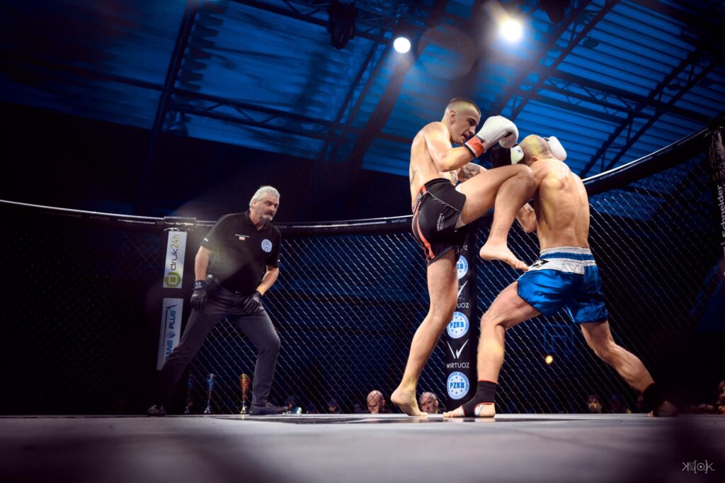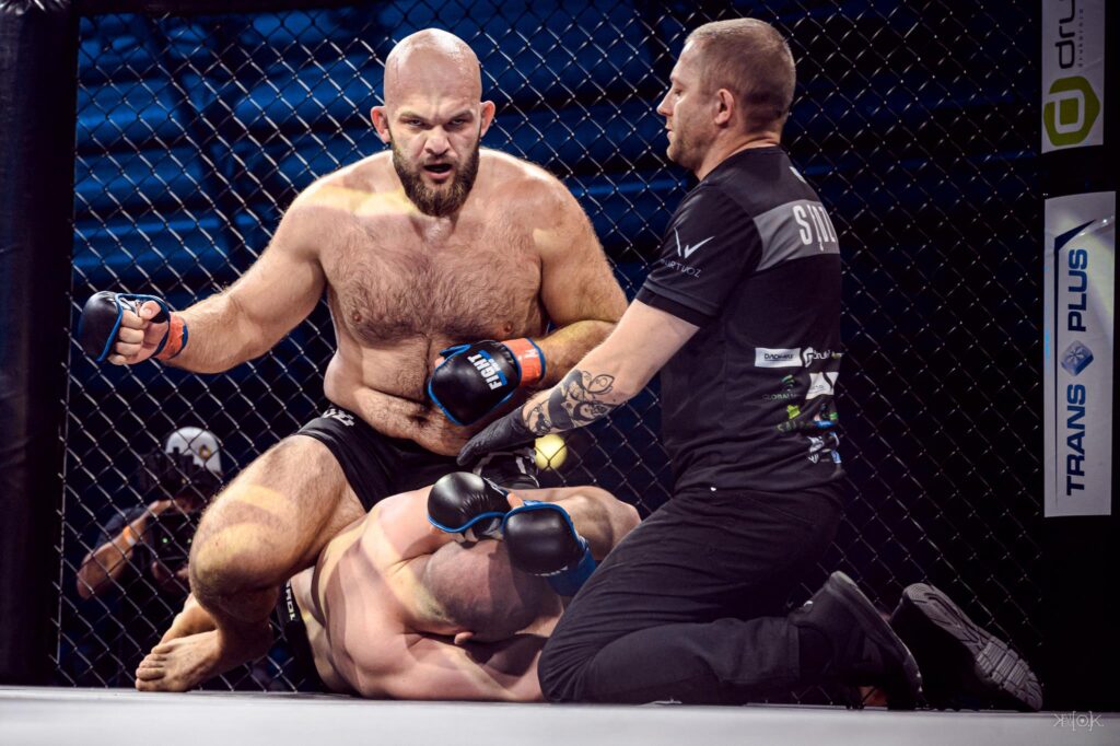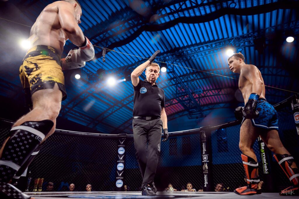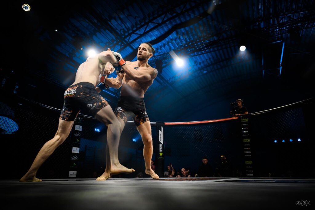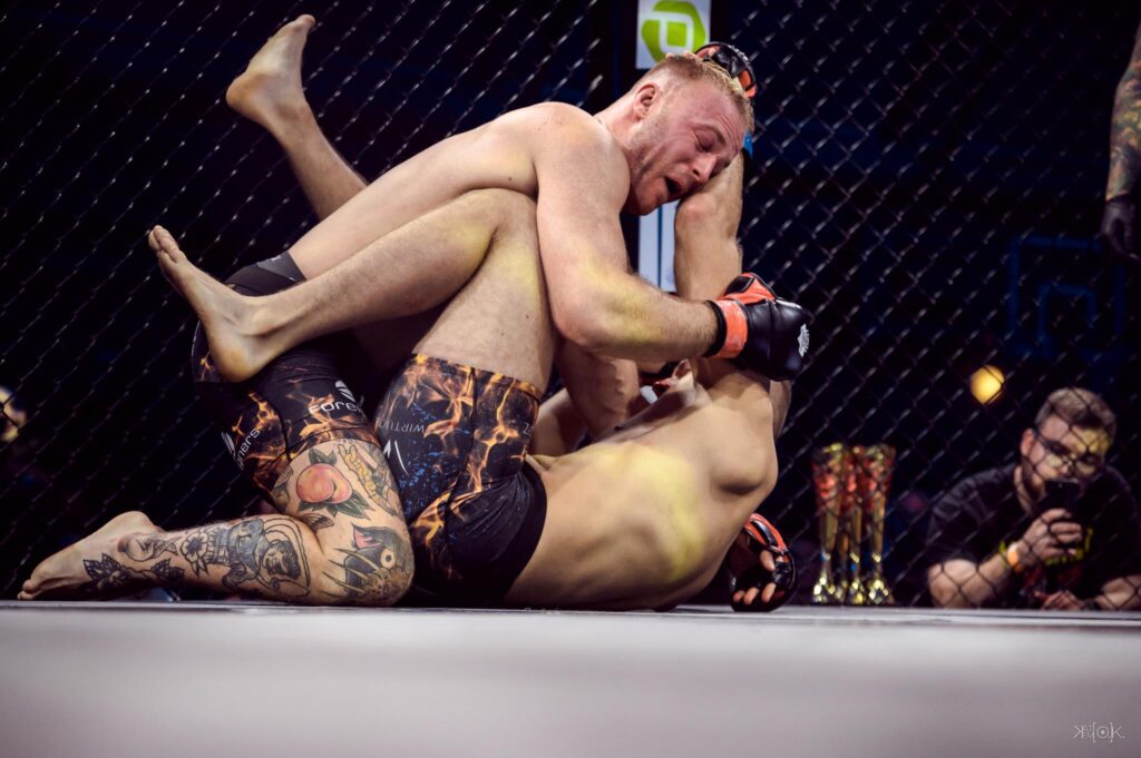 Pojedynek numer trzy, czyli Bartek Kubik (Widzew Łódź – sekcja bokserska) kontra Adrian Gwadera (Bastion Bełchatów). W drugiej rundzie przez duszenie gilotynowe walkę wygrywa zawodnik z Bełchatowa.