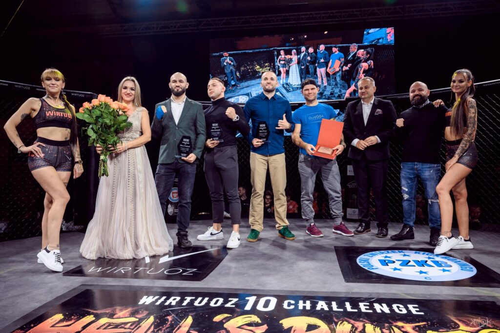 Kartę główną otworzyli organizatorzy wręczając pamiątkowe statuetki zawodnikom walczącym na przestrzeni 9 edycji w Octagonie Wirtuoz Challenge. Uhonorowany został Adrian Bartosiński (Mistrz KSW), Robert Krasoń (Multimedalista Kicboxerski), Mateusz Kubiszyn (Mistrz Gromdy) oraz Marcin Krakowiak, współorganizator, a zarazem zawodnik KSW.