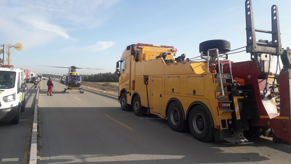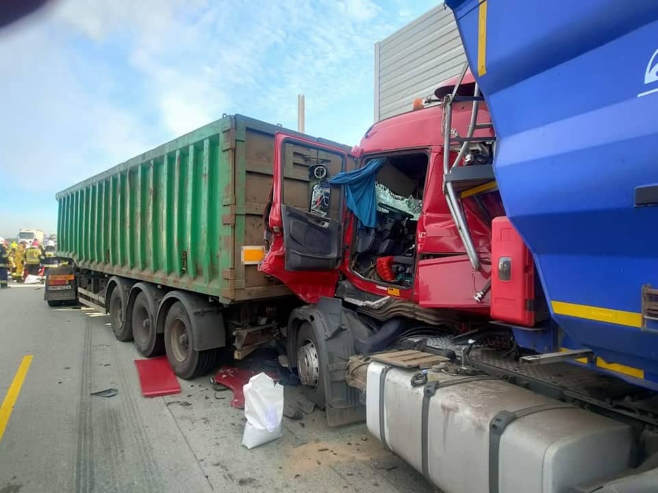 – Ze wstępnych informacji od policjantów będących na miejscu wynika, że kierujący pojazdem scania z naczepą nie zachował bezpiecznej odległości od poprzedzającego go pojazdu, w wyniku czego najechał na tył naczepy ciężarowego dafa, który zatrzymał się na pasie drogi w wyniku zatoru. Następnie w wyniku tego zderzenia zdarzenia wspomniana ciężarówka uderzyła w tył naczepy jadącego przed nim również pojazdu ciężarowego daf. W wyniku tego zdarzenia, obrażenia doznał kierowca pojazdu scania który śmigłowcem śmigłowcem LPR zostanie przetransportowany do szpitala. Kierujący dafami byli trzeźwi, natomiast kierujący scanią jest w trakcie badania. Droga jest w tym miejscu całkowicie zablokowana. Utrudnienia potrwają do około godziny 13. – informuje st. asp Izabela Gajewska z KMP w Piotrkowie.