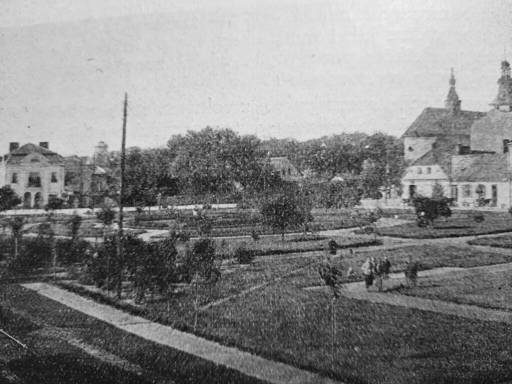 Pierwszym ze wspomnianych projektów Leona Józefa Danielewicza (1878-1970) wykonanych w Piotrkowie była Agricola, czyli parkowy wodewil powstały w 1927 roku jako zaczątek piotrkowskich plantów. Zlokalizowano go na placu Hanki Sawickiej (dzisiejszy zbieg al. 3 Maja i Al. Kopernika) i placu Niepodległości, po tym jak wyprowadzono z tego terenu handlujących i zlikwidowano stojące tam jeszcze od czasów gubernialnych drewniane hale targowe. Likwidacji uległ również istniejący na tym obszarze staw, dawna atrakcja teatrzyku „Wodewill” (przeczytasz o nim tutaj), która z czasem stała się zbiornikiem zbierającym nieczystości spływające doń z ww. targowiska. Po zasypaniu stawu i splantowaniu (wyrównaniu) terenu rozpoczęto w tej części piotrkowskiego śródmieścia prace ogrodnicze. Według zamysłu Danielewicza wytyczono uliczki i miejsca do odpoczynku, a całość ogrodu spacerowego otoczono niską, żelazną barierką. Agricola do wybuchu II wojny światowej stanowiła największą ozdobę tej części śródmieścia. Podlegała ogrodnikowi miejskiemu, opłacanemu przez Zarząd Miasta Piotrkowa.