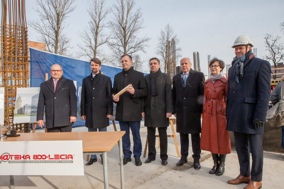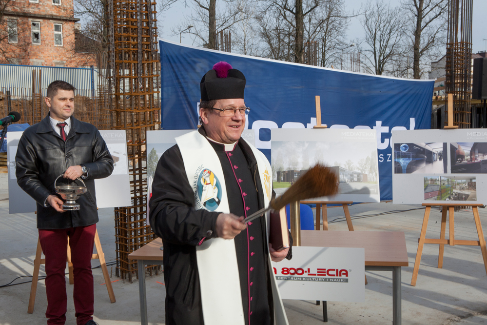 Akt erekcyjny pod budowę piotrkowskiej mediateki, podpisano i wmurowano w środę, w fundamentach nowego obiektu. Miał tu być sam Wicepremier i Minister Kultury Piotr Gliński, Wojewoda Zbigniew Rau i Marszałek Województwa Witold Stępień. Żaden z zaproszonych do Piotrkowa nie dotarł, przysłali za to swoich przedstawicieli. Nie zabrakło za to duchownego, który poświęcił budowę nowej biblioteki.