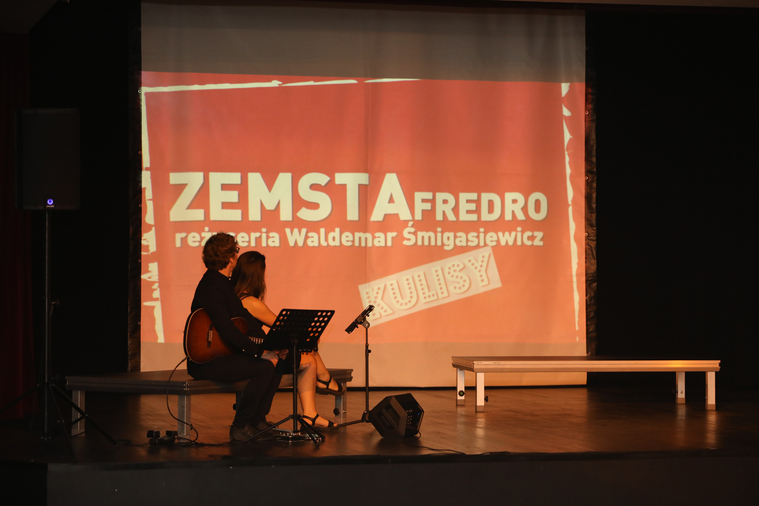 Uczestnicy obejrzeli interpretację ,,Zemsty” Aleksandra Fredry – utworu, który piętnuje obłudę i zakłamanie, a jego tematyka jest wciąż aktualna. – Odnajdujemy w nim komizm i gorzką ironię, mistrzowskie odmalowanie postaci i wyczucie języka, ale przede wszystkim uniwersalne przesłanie moralne, które w imię uczciwości i sprawiedliwości każe potępiać zło – mówią organizatorzy.