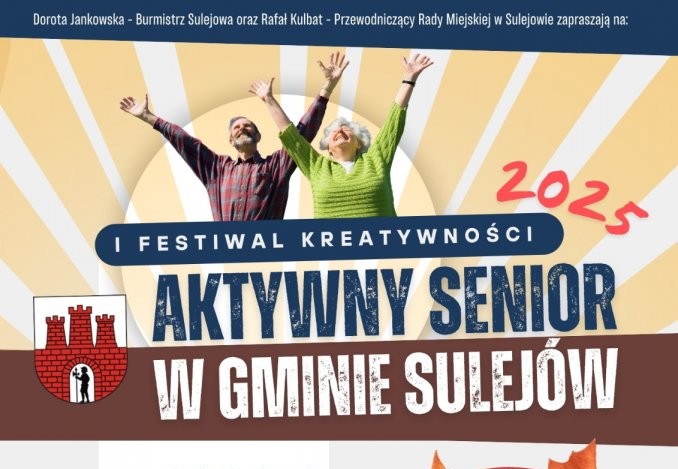 W imieniu organizatorów zachęcamy do wzięcia udziału w I Festiwalu Kreatywności – Aktywny Senior w gminie Sulejów 2025, który odbędzie się w niedzielę, 19 października 2025 roku, w sulejowskiej auli multimedialnej, przy ulicy Rynek 1. Do czwartku, 16 października, można przesyłać formularze zgłoszeniowe, które razem z regulaminem udostępniliśmy w tym artykule.
