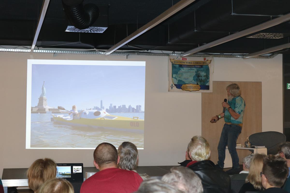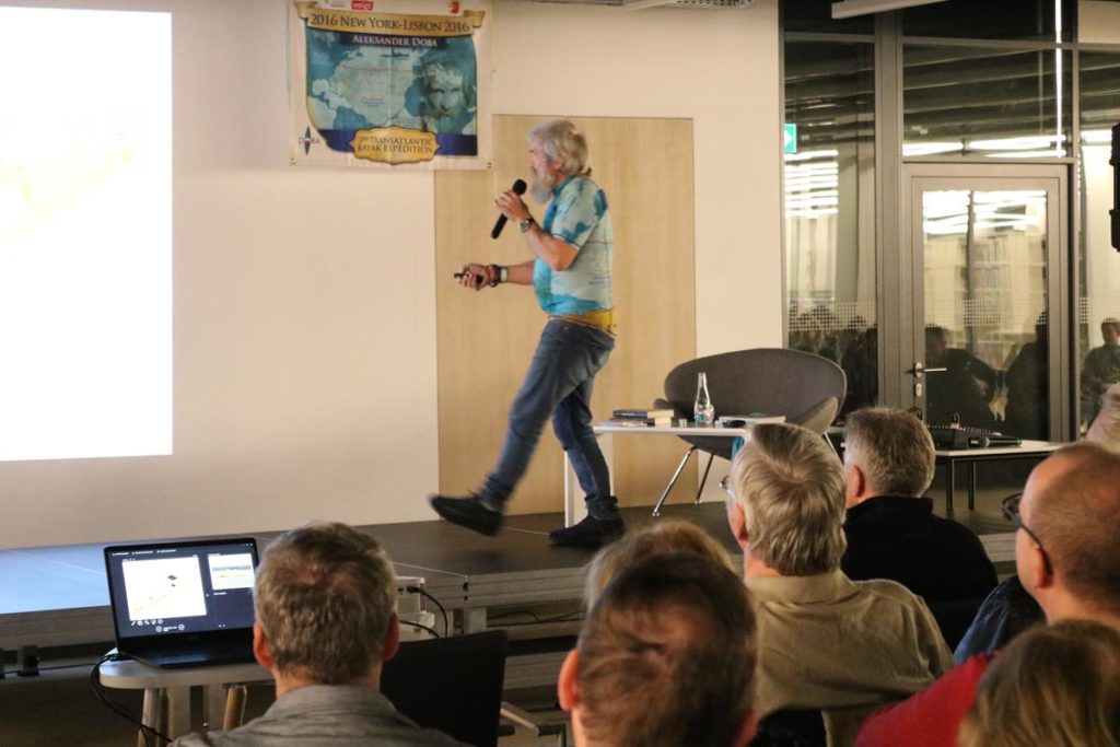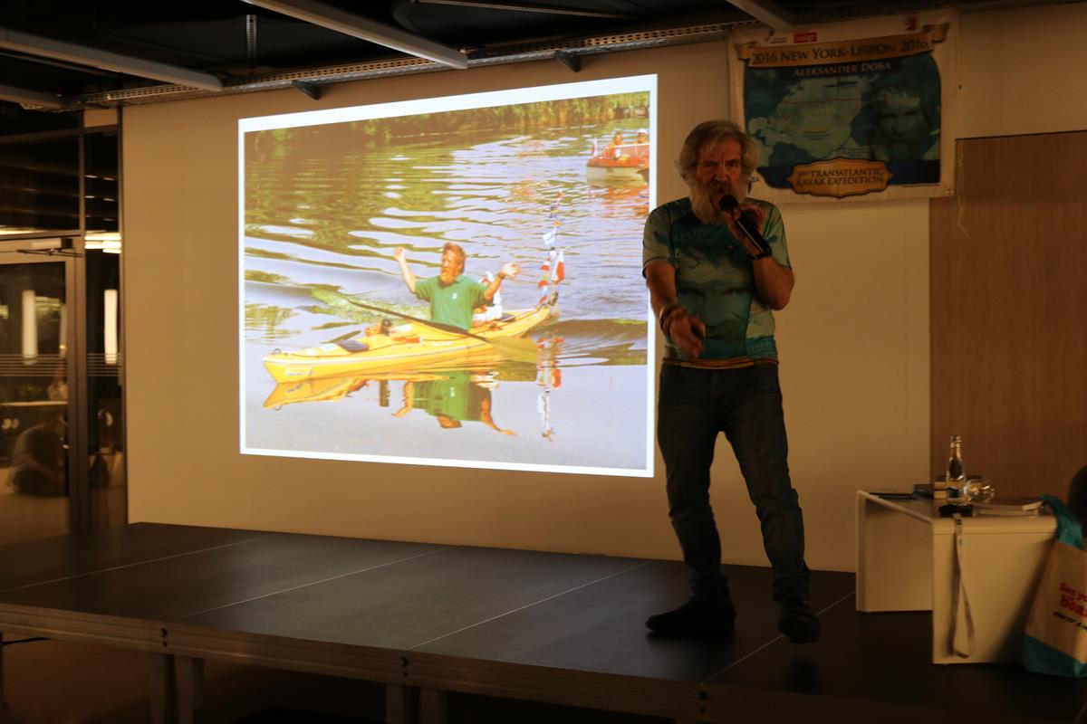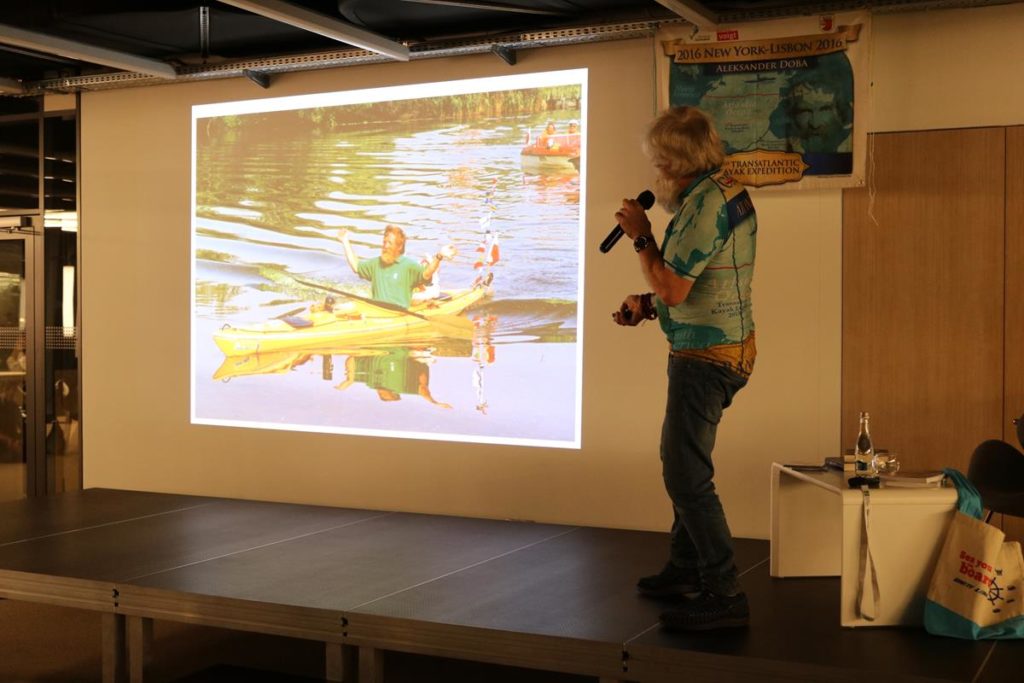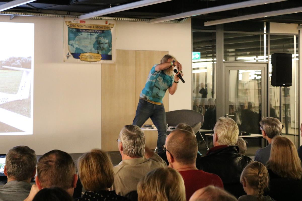 Niezwykle emocjonujące spotkanie z energetycznym podróżnikiem i człowiekiem wielu talentów odbyło się wczoraj w Mediatece. Dowcip, ekspresja i niesamowite przygody Aleksandra Doby nie mogły się nie podobać blisko 200 osobom zgromadzonym na spotkaniu. Opowieść o przemierzeniu Atlantyku kajakiem z minuty na minutę stawała się bardziej ekscytująca, także nie wiedzieć kiedy Pan Aleksander kazał do siebie mówić „Olo” i zaczął sobie robić selfie z publicznością.