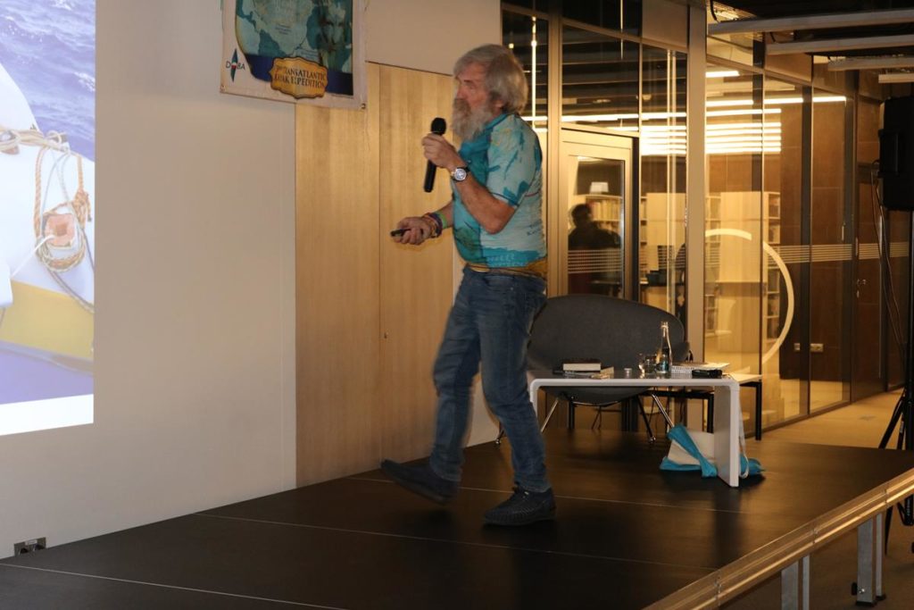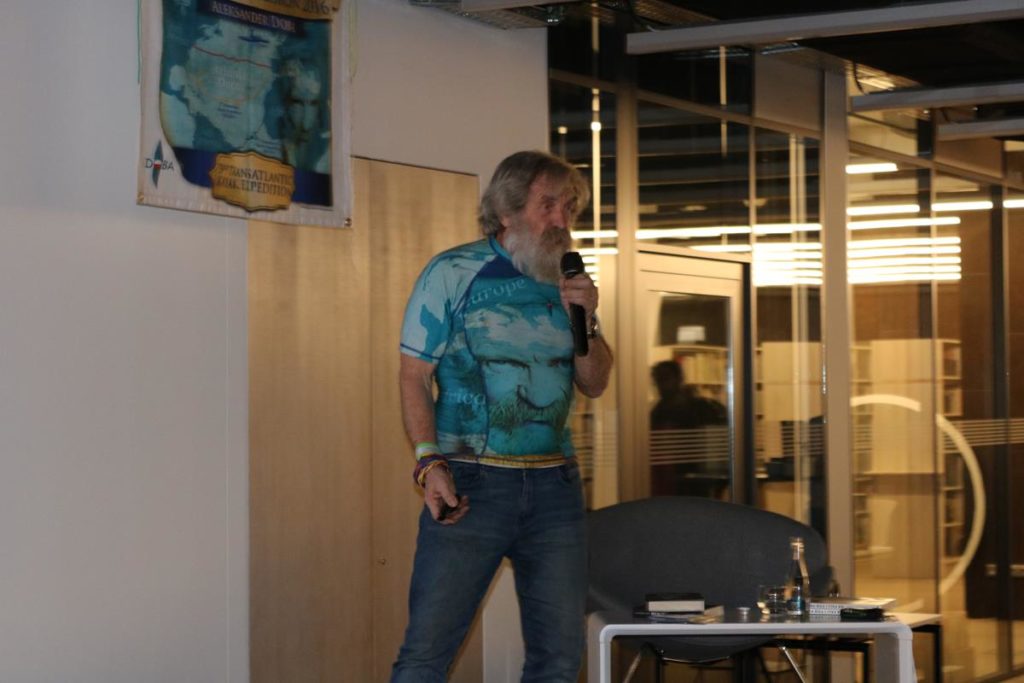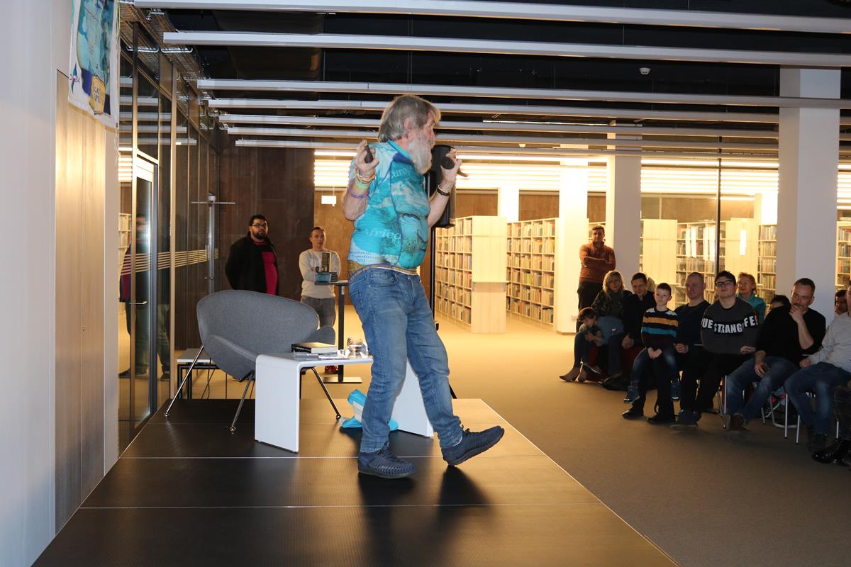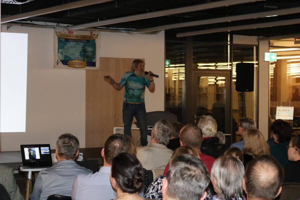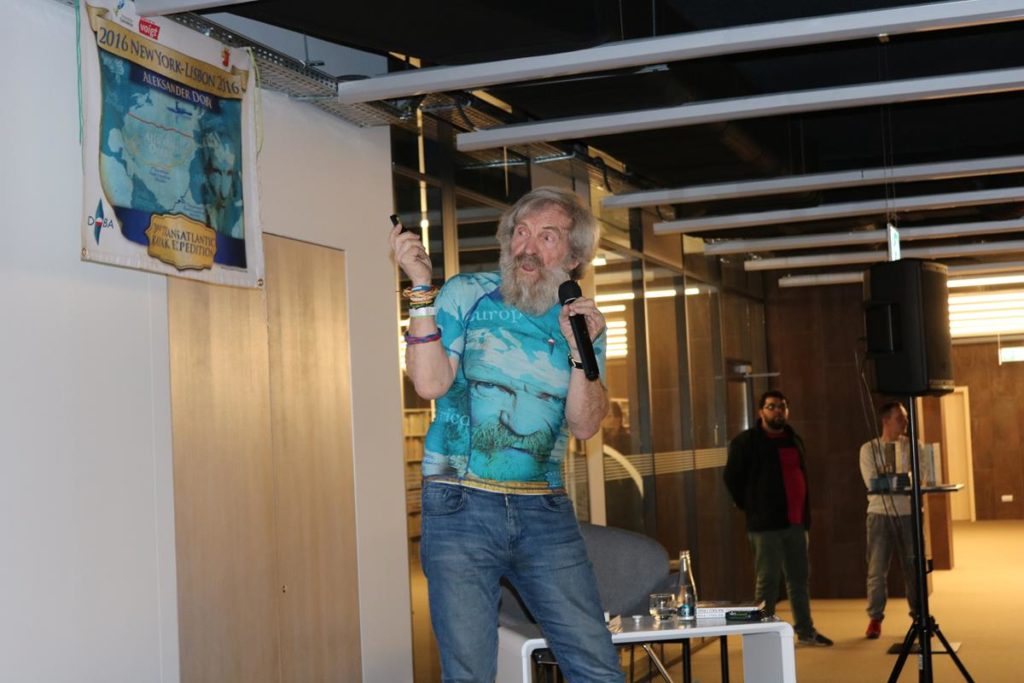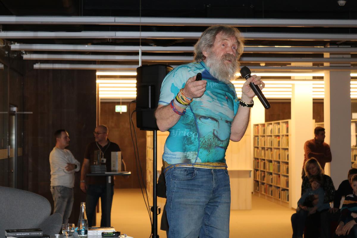 Niezwykle emocjonujące spotkanie z energetycznym podróżnikiem i człowiekiem wielu talentów odbyło się wczoraj w Mediatece. Dowcip, ekspresja i niesamowite przygody Aleksandra Doby nie mogły się nie podobać blisko 200 osobom zgromadzonym na spotkaniu. Opowieść o przemierzeniu Atlantyku kajakiem z minuty na minutę stawała się bardziej ekscytująca, także nie wiedzieć kiedy Pan Aleksander kazał do siebie mówić „Olo” i zaczął sobie robić selfie z publicznością.