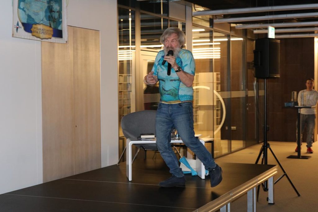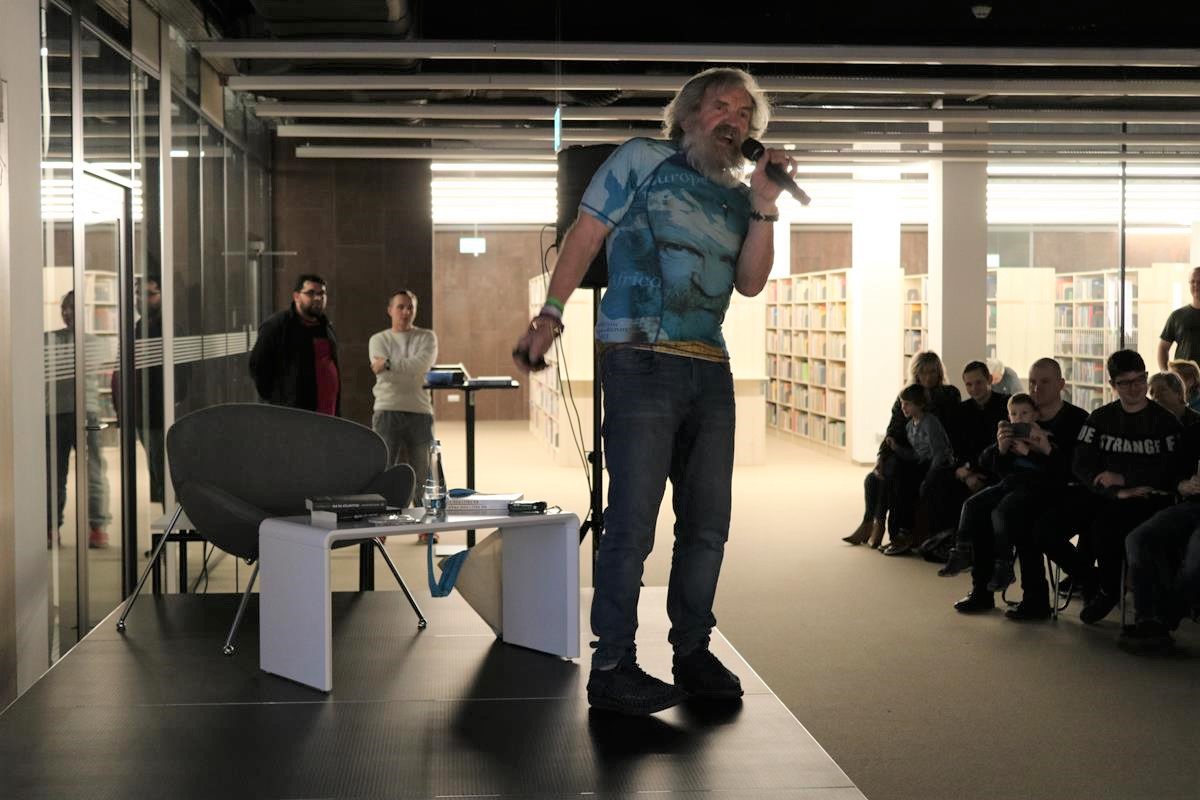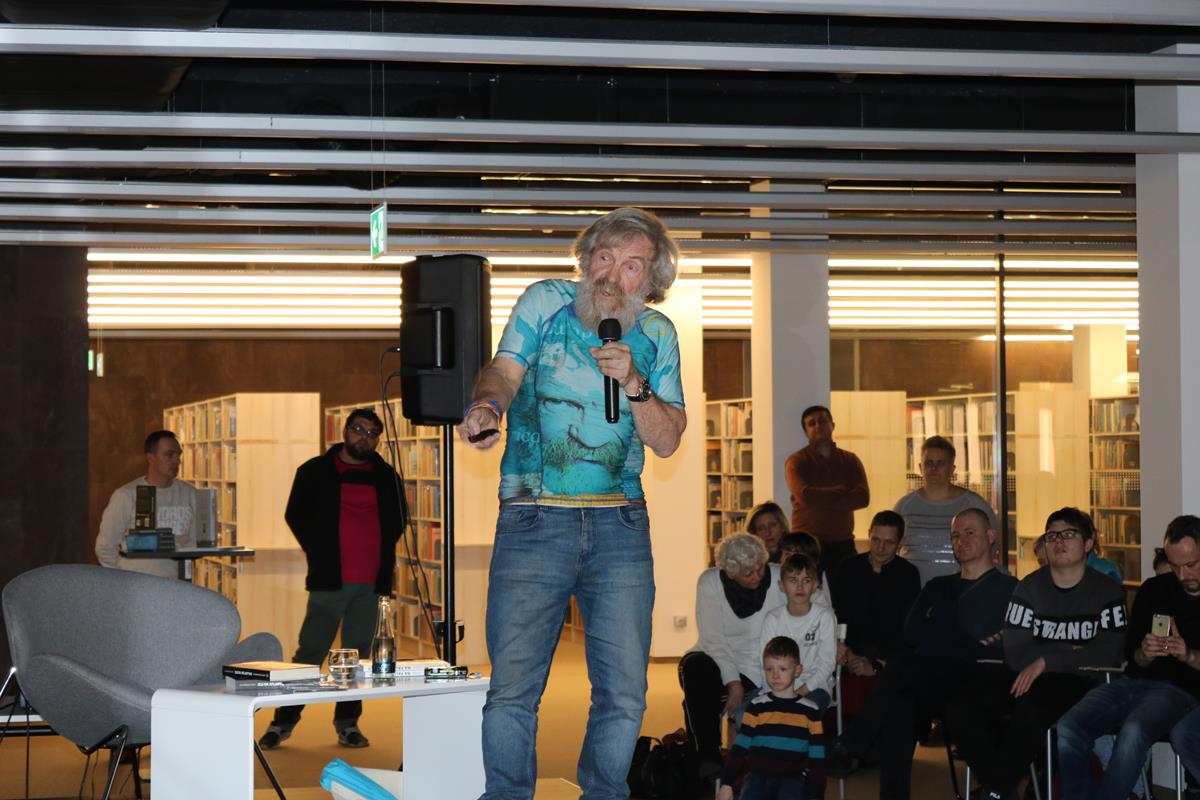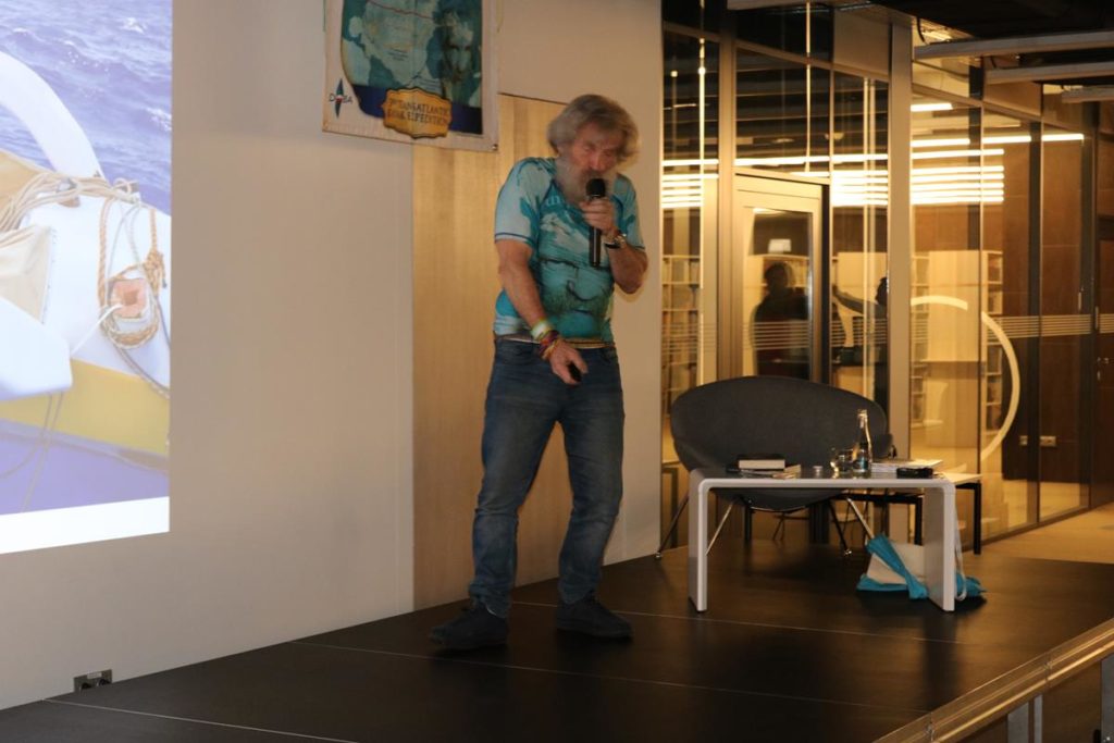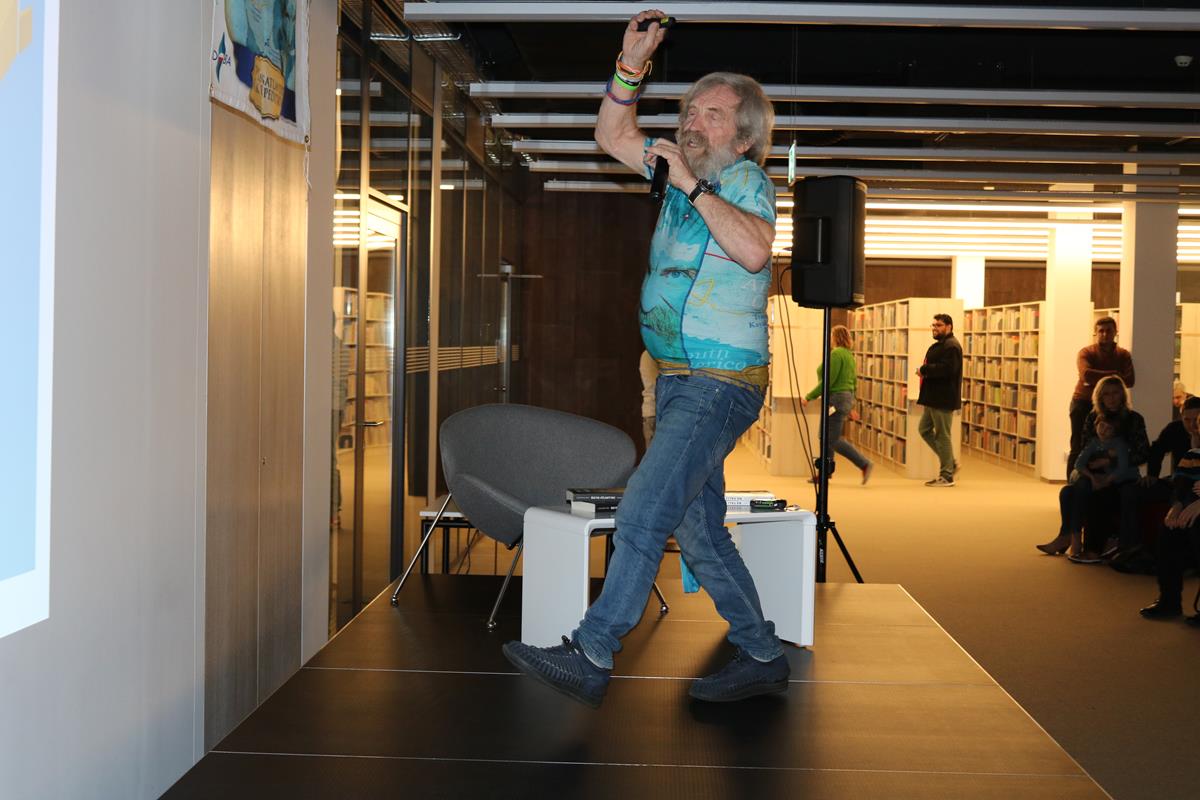 Niezwykle emocjonujące spotkanie z energetycznym podróżnikiem i człowiekiem wielu talentów odbyło się wczoraj w Mediatece. Dowcip, ekspresja i niesamowite przygody Aleksandra Doby nie mogły się nie podobać blisko 200 osobom zgromadzonym na spotkaniu. Opowieść o przemierzeniu Atlantyku kajakiem z minuty na minutę stawała się bardziej ekscytująca, także nie wiedzieć kiedy Pan Aleksander kazał do siebie mówić „Olo” i zaczął sobie robić selfie z publicznością.
