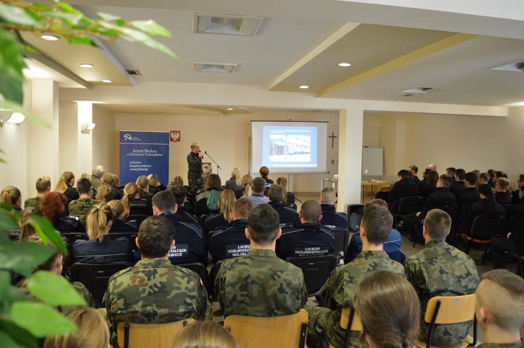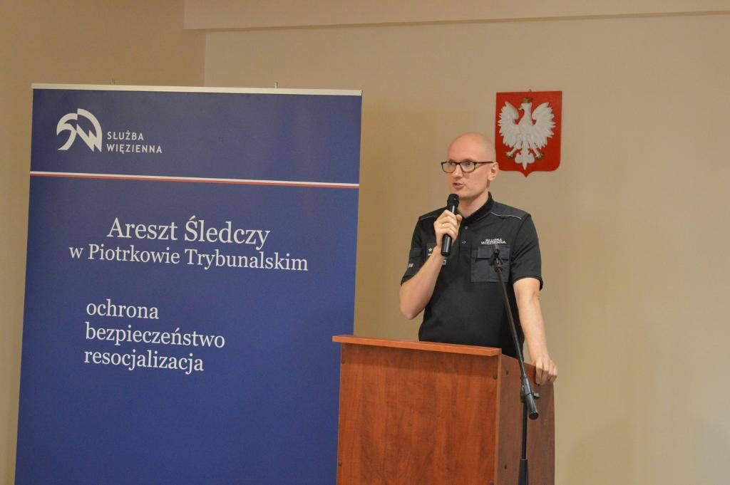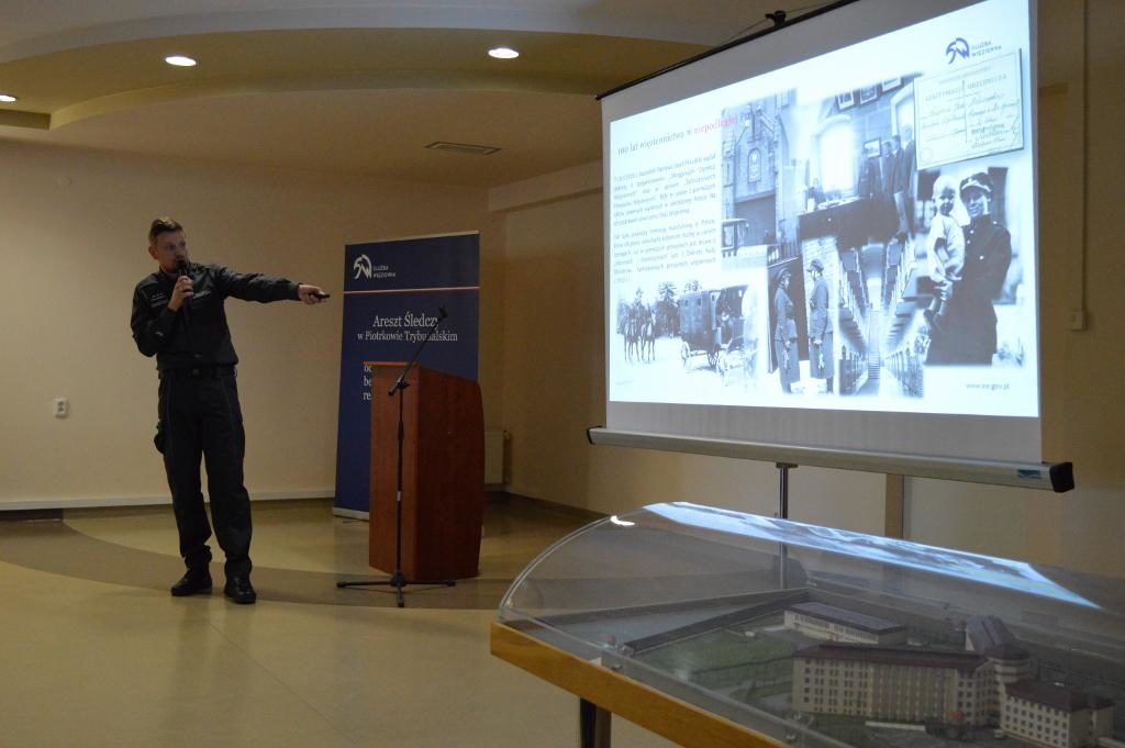 Dzień intensywnych zajęć zaczął się od wizyty w Areszcie Śledczym w Piotrkowie Trybunalskim. Uczniów przywitał dyrektor piotrkowskiej jednostki penitencjarnej płk Krzysztof Mrówczyński, który wygłosił wykład na temat historii więziennictwa na terenie ziemi piotrkowskiej. Kpt. Paweł Wochal Rzecznik Prasowy Okręgowego Inspektoratu Służby Więziennej w Łodzi omówił organizację Zakładów Karnych i Aresztów Śledczych znajdujących się na terenie okręgu łódzkiego, a por. Aleksander Czyżowicz z Centralnego Zarządu Służby Więziennej w Łodzi wygłosił prelekcję na temat stuletniej historii Służby Więziennej. Na koniec tej części spotkania por. Cezary Jabłoński Rzecznik Prasowy Aresztu Śledczego w Piotrkowie Trybunalskim przybliżył przyszłym absolwentom LO specyfikę służby i kryteria naboru kandydatów.