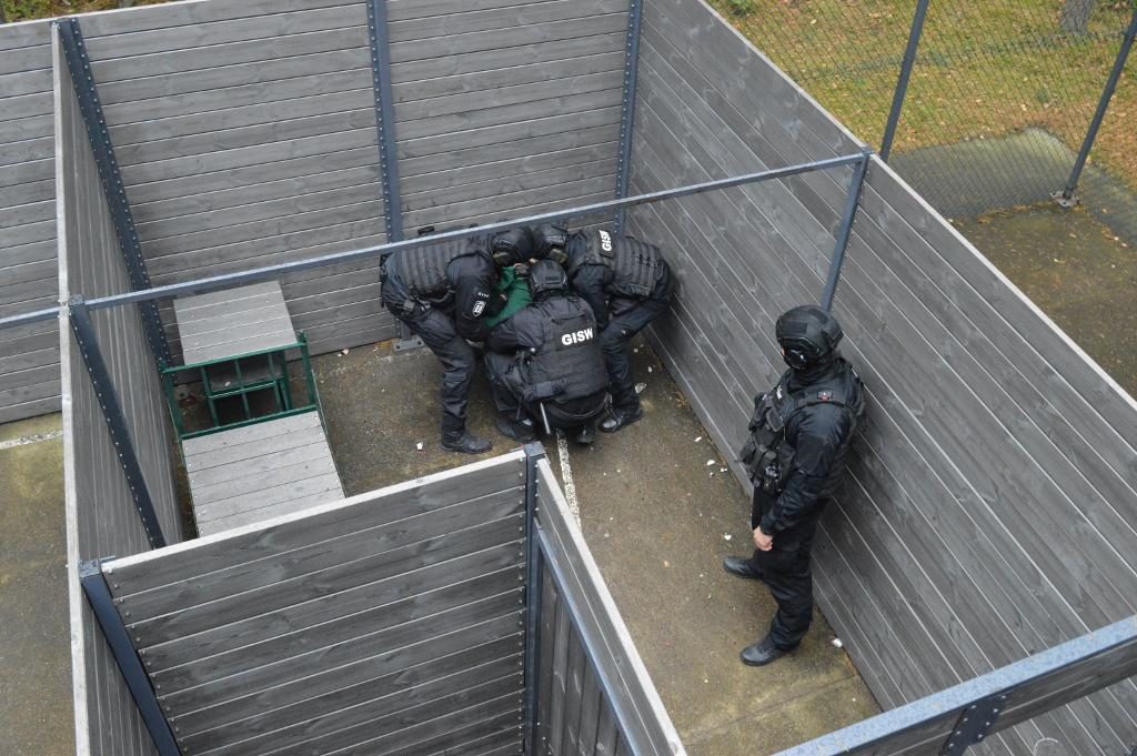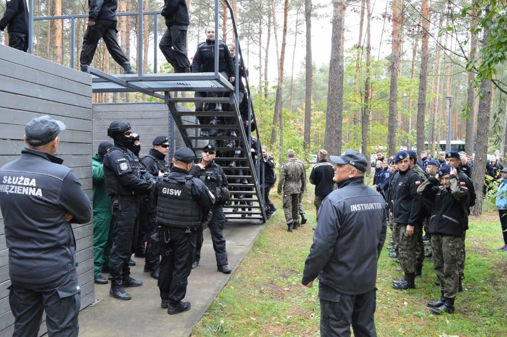 Po południu uczestnicy zajęcia odbywały się w ośrodku w Sulejowie. Tam uczniowie mogli zobaczyć pokaz technik interwencyjnych i wykorzystania środków przymusu bezpośredniego przez Grupę Interwencyjną Służby Więziennej z Łodzi. Ponadto młodzież zapoznała się z infrastrukturą i zapleczem dydaktycznym sulejowskiego ośrodka szkolenia, po czym rozpoczęły się kolejne zajęcia w grupach prowadzone przez wykładowców ośrodka.