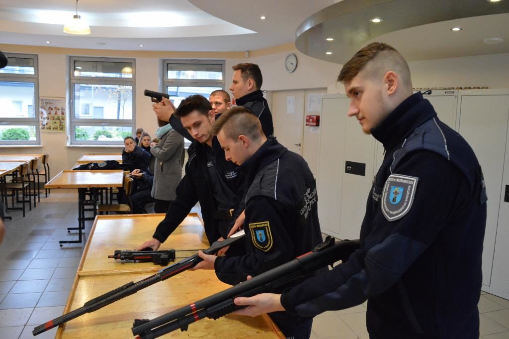 W dalszej kolejności, uczniowie zwiedzili Areszt z także poznali broń jaką dysponują strażnicy. Poznali także wyposażenie ochrony osobistej, którymi w codziennej służbie posługują się funkcjonariusze Służby Więziennej.