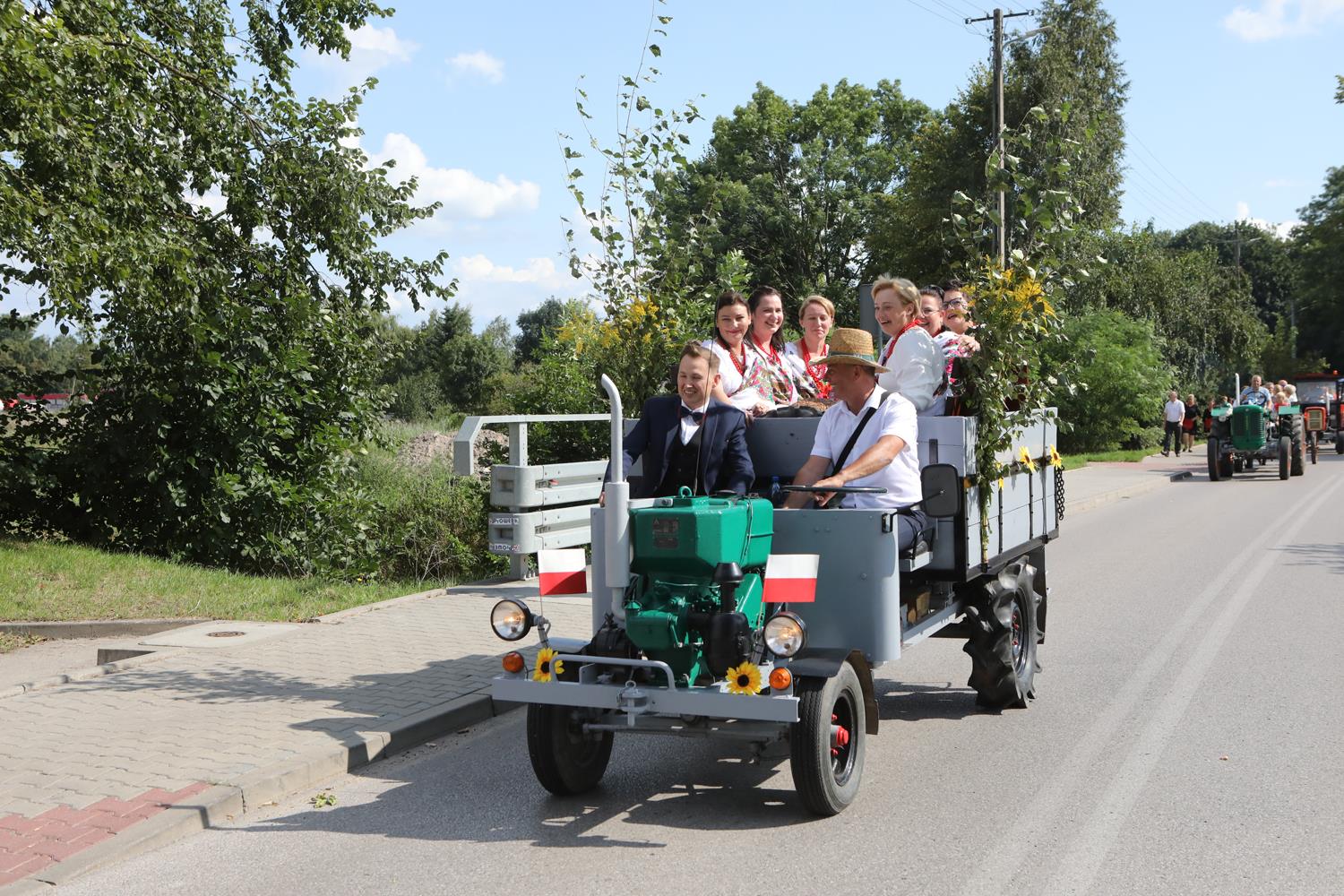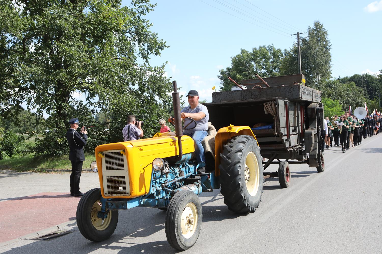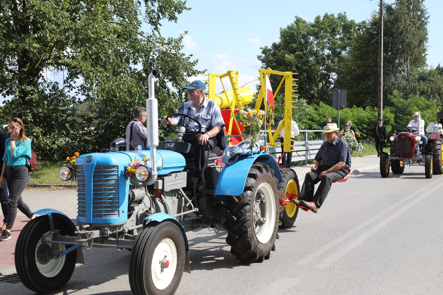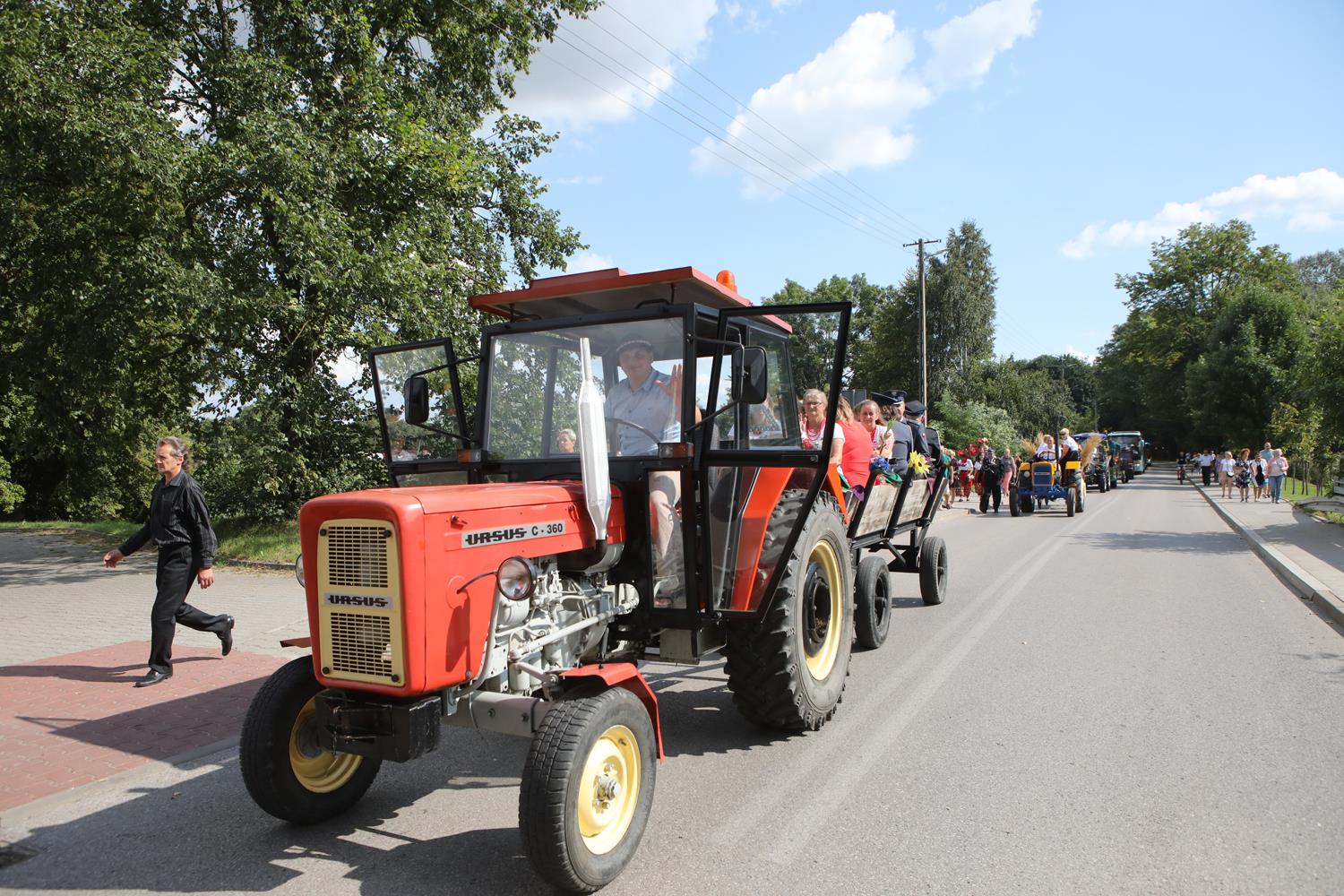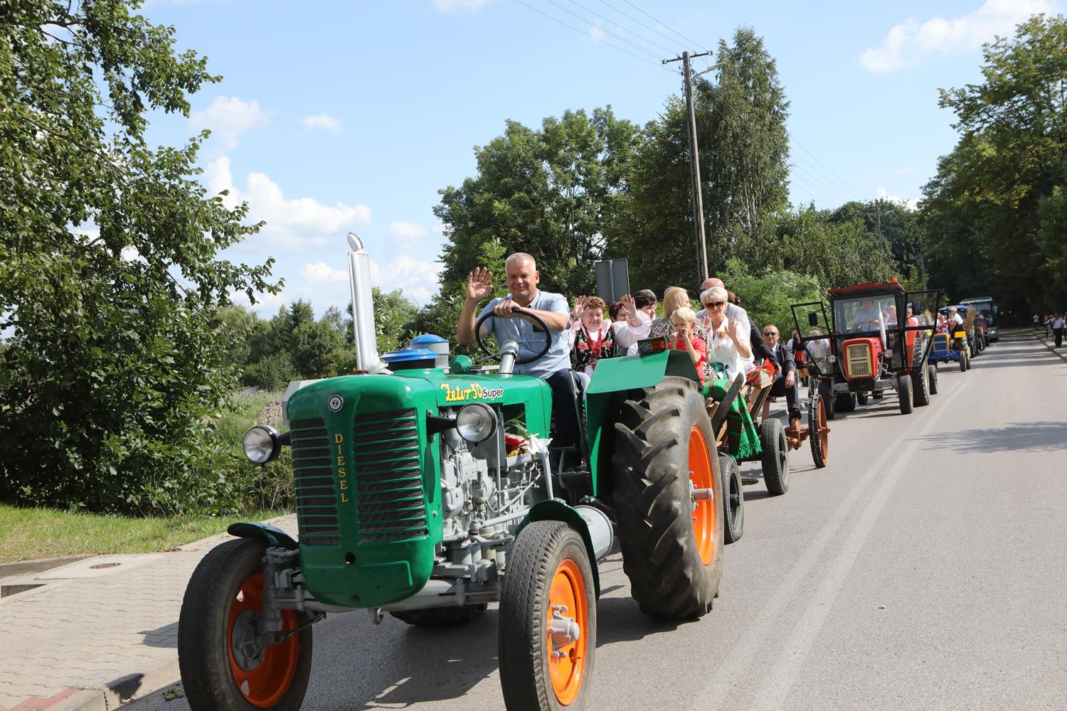 Na ceremoniał uczestnicy dotarli w korowodzie, z udziałem prawdziwych perełek, jakimi są dawne traktory, które rolnikom nadal służą w codziennej pracy. Wozami przyjechali goście i 13 delegacji wieńcowych, które prowadziła Młodzieżowa Orkiestra Dęta z Grabicy i liczne poczty sztandarowe.